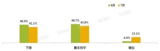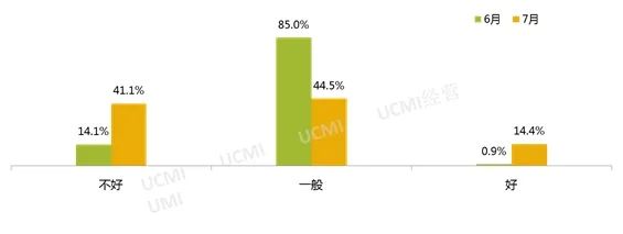 调查显示,经销商认为7月份的经营有所恶化,认为经营状况“一般”的比例为44.5%,认为“不好”的经销商比例为41.1%。