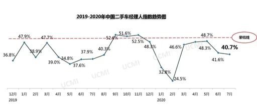 2020年8月3日,中国汽车流通协会发布最新一期“中国二手车经理人指数”(UCMI)。本期UCMI结果显示,7月份二手车经理人指数为40.7%,仍处于荣枯线以下,二手市场表现不活跃。