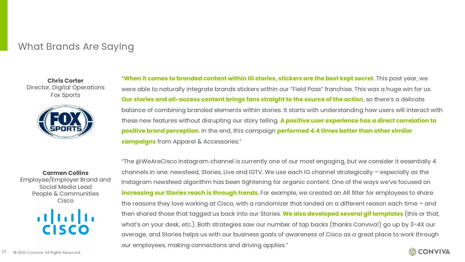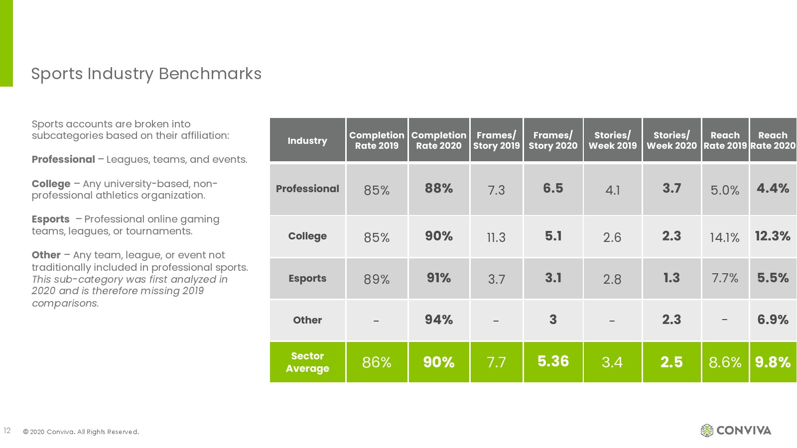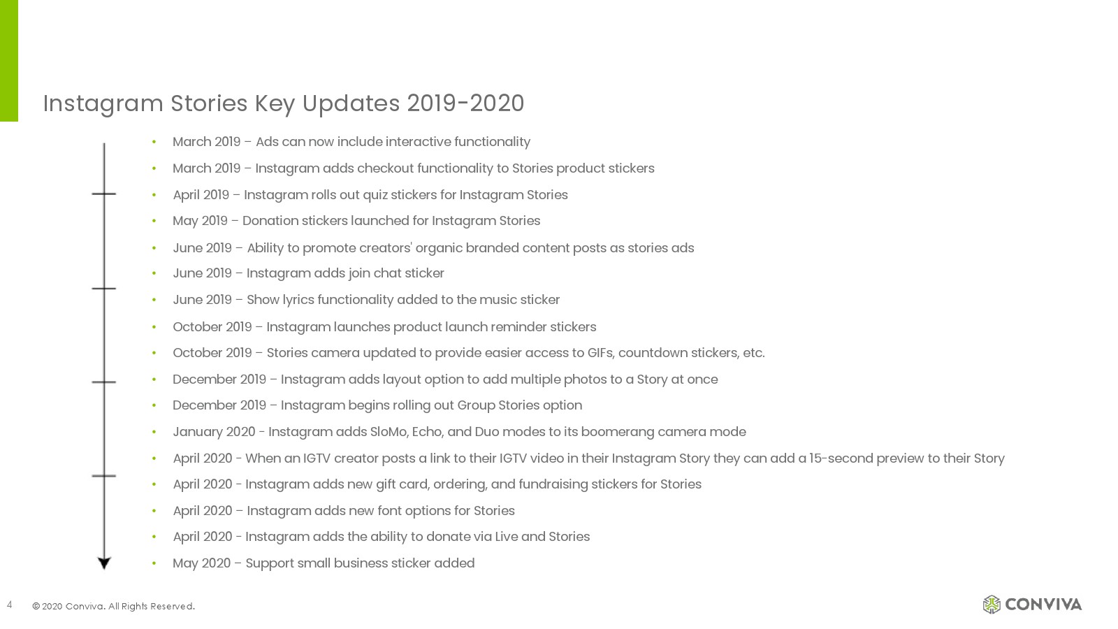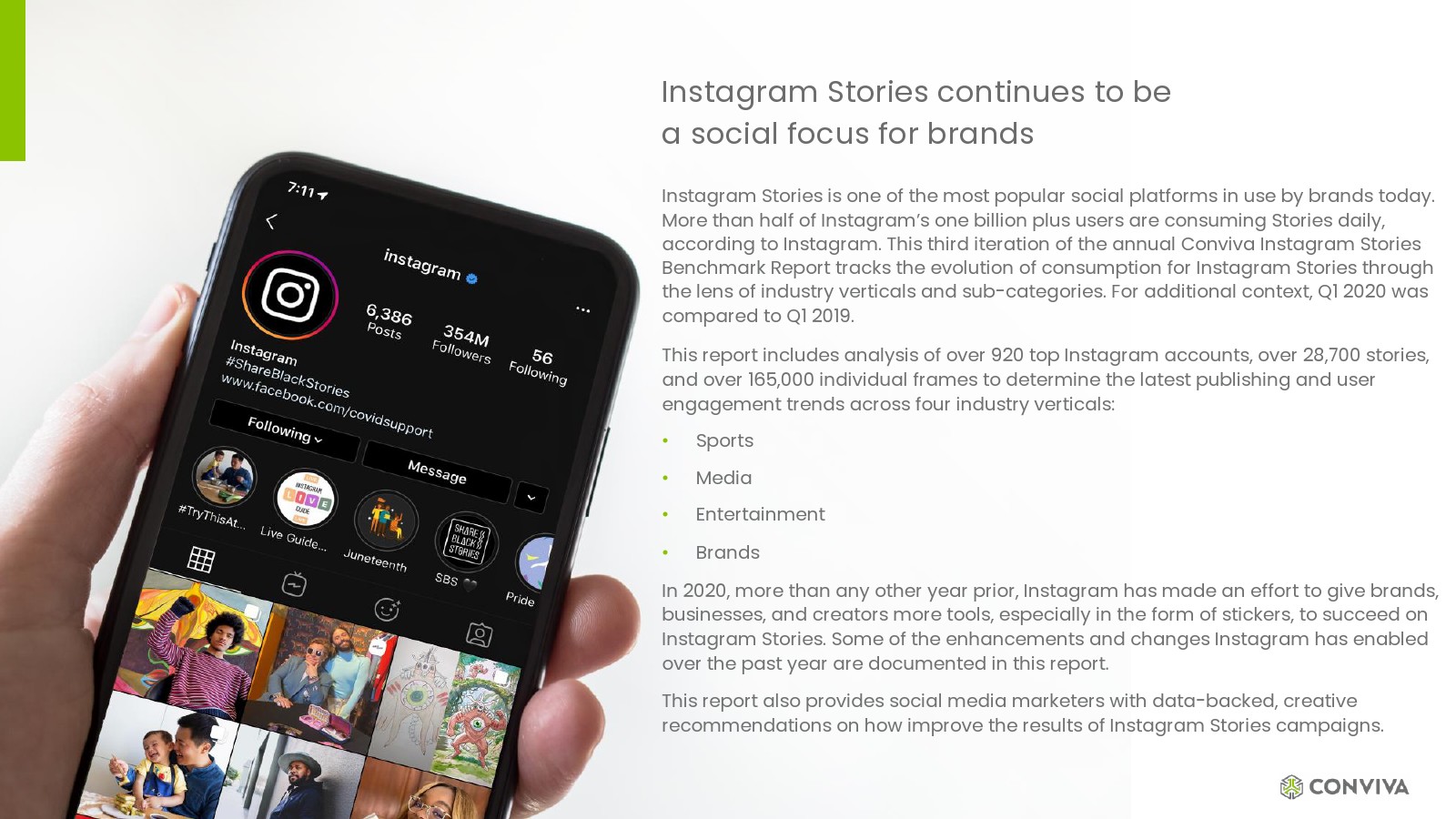 Conviva发布了“2020年Instagram Stories基准报告”。Instagram的10亿多用户中有超过一半每天都在发布和收看Stories,平均完成率从2018年的73%上升到2020年的87%。
