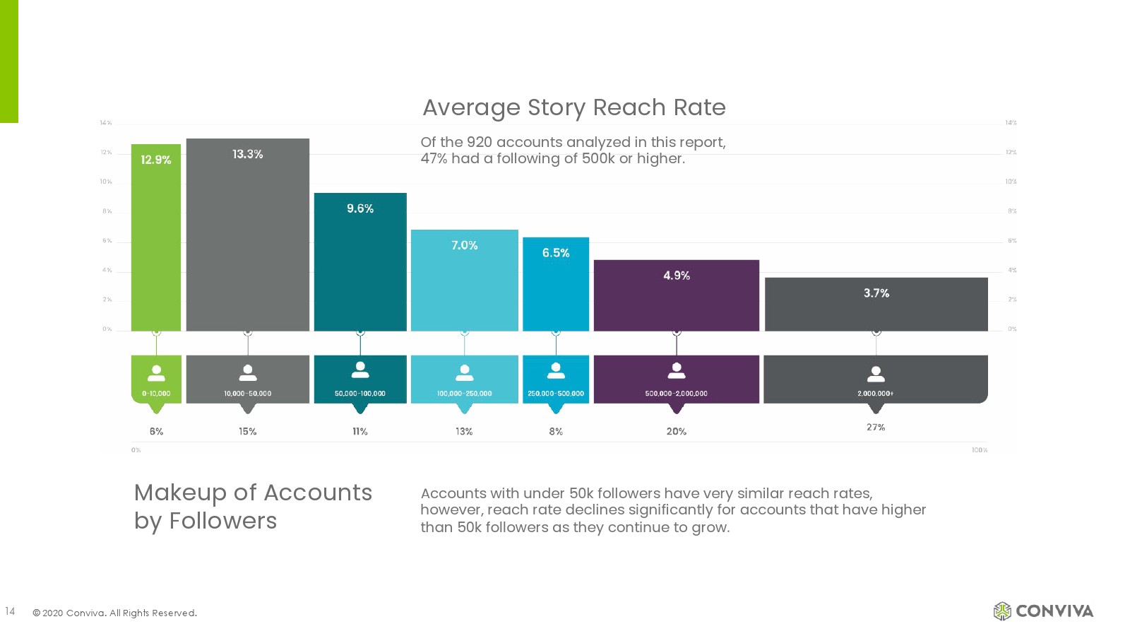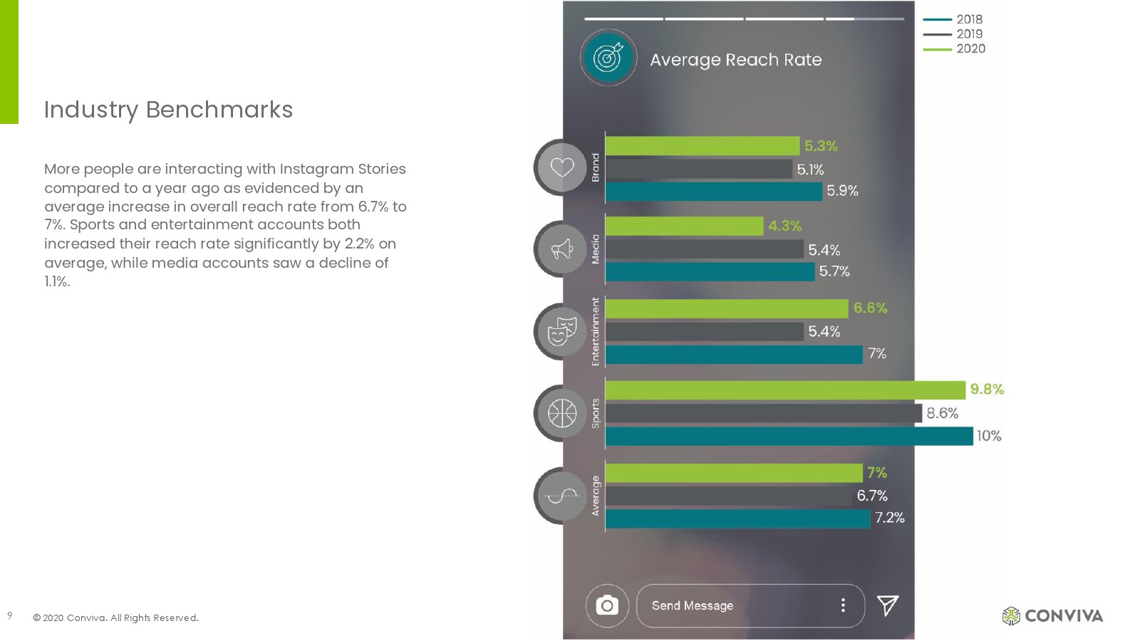 尽管2018年至2019年的平均到达率从7%略降至6.7%,但今年与Instagram Stories的互动平均达到7.2%。