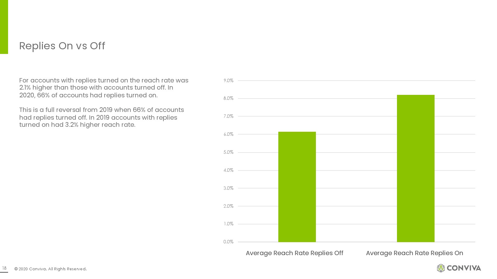 虽然2019年66%的账户关闭了对Stories回复,但今年情况发生了逆转,2/3的Stories开启了回复。