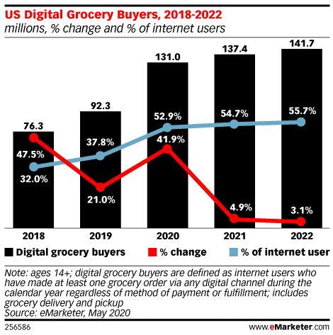 杂货电商在大流行之前已经处于拐点,必需品向在线的迁移在3-4个月的时间里将这一趋势加速了3-4年。