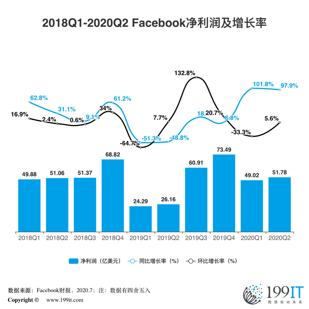 - 2020年Q1-2021年Q2 Facebook净利润及增长率(附原数据表)