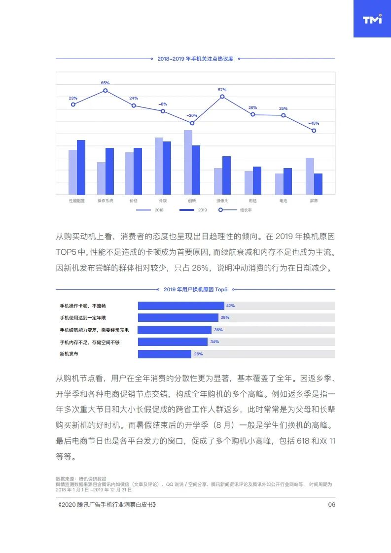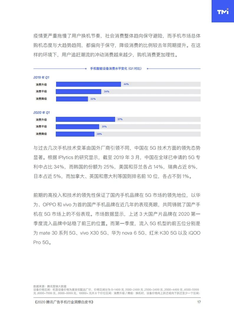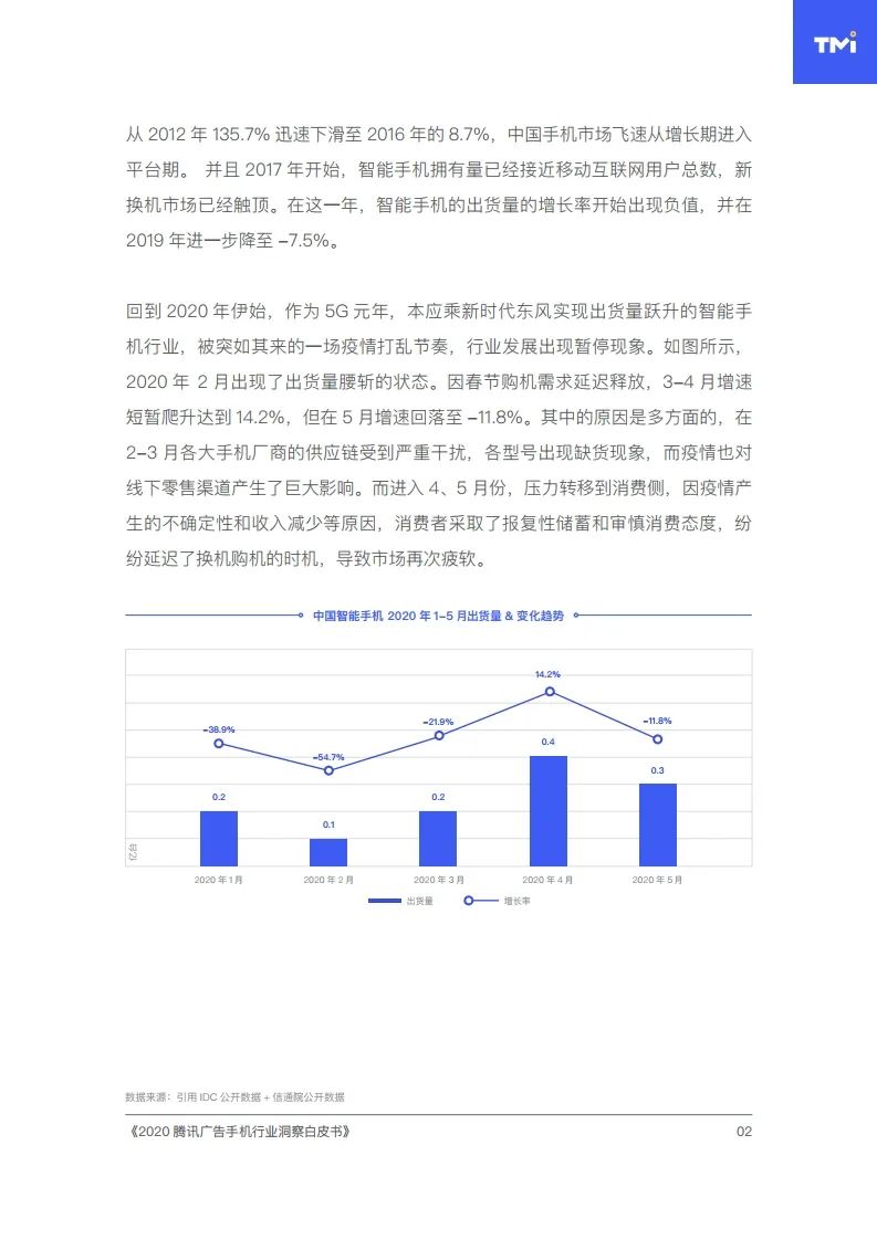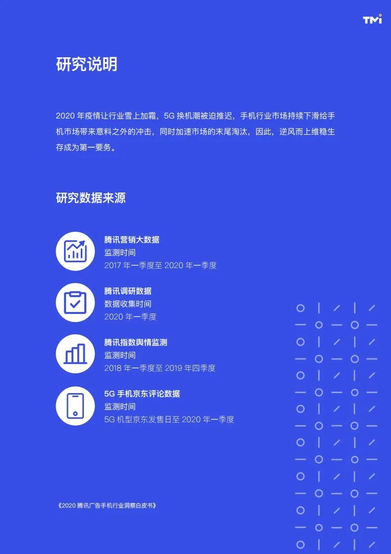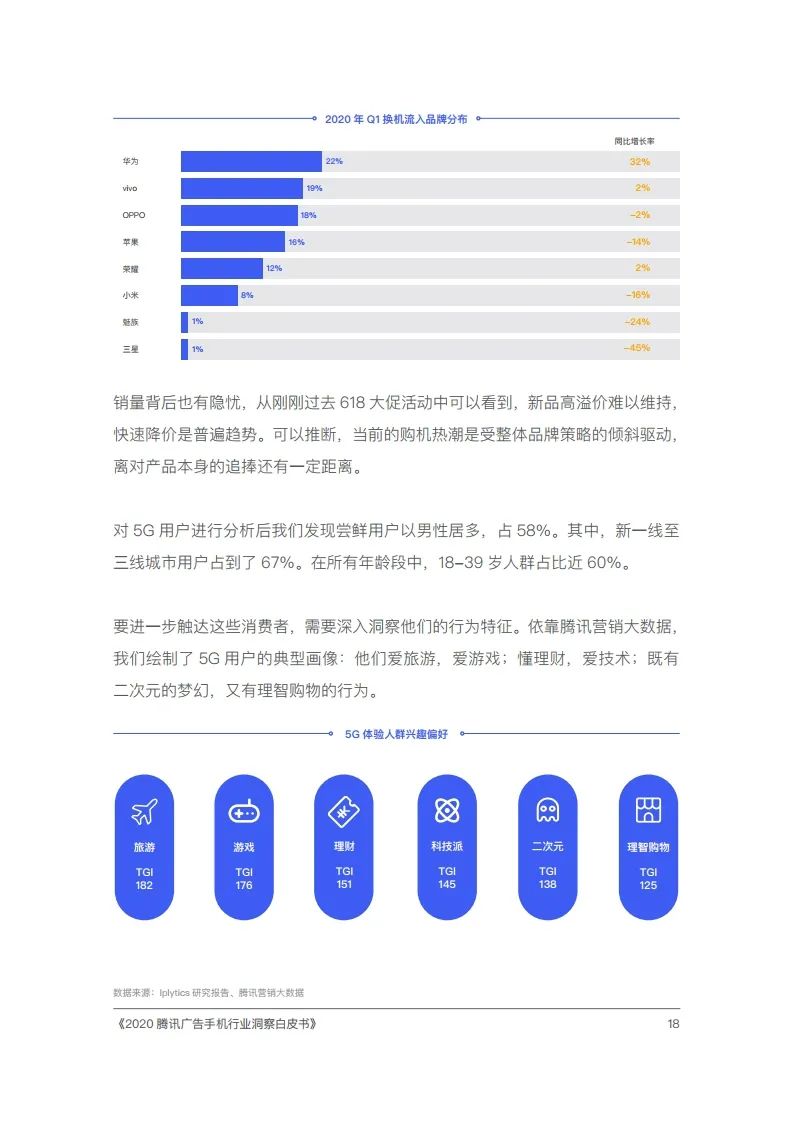 在此背景下,腾讯营销洞察(TMI)发布《2020腾讯手机行业洞察白皮书》。对于各品牌厂商,如何回归本源、深耕细作,在逆境中蛰伏,保存实力和市场份额,并在此基础上,稳守反击,抓住5G换机潮将是他们在2020年的主题。本报告发挥腾讯营销洞察(TMI)的大数据优势,力图层层剥茧,看清现象之下的本质,洞察噪音之中的真知,为读者提供化危机为生机、新机的灵感和证据。