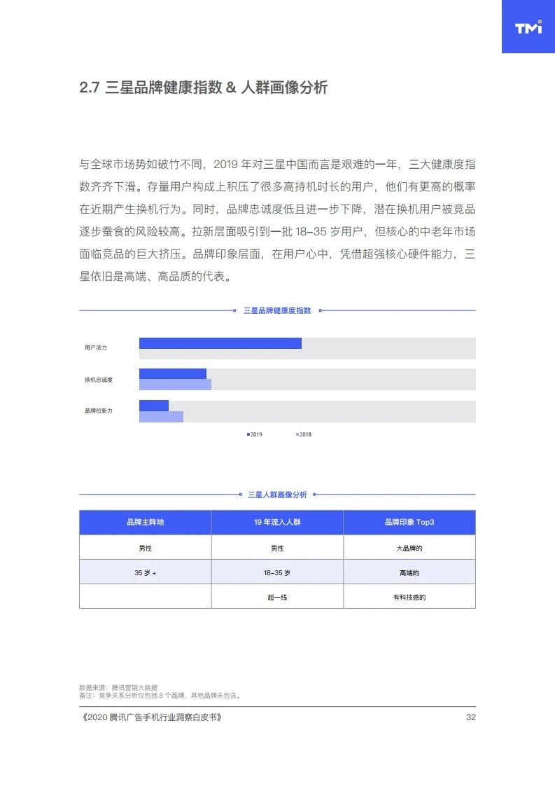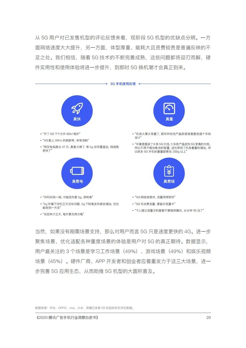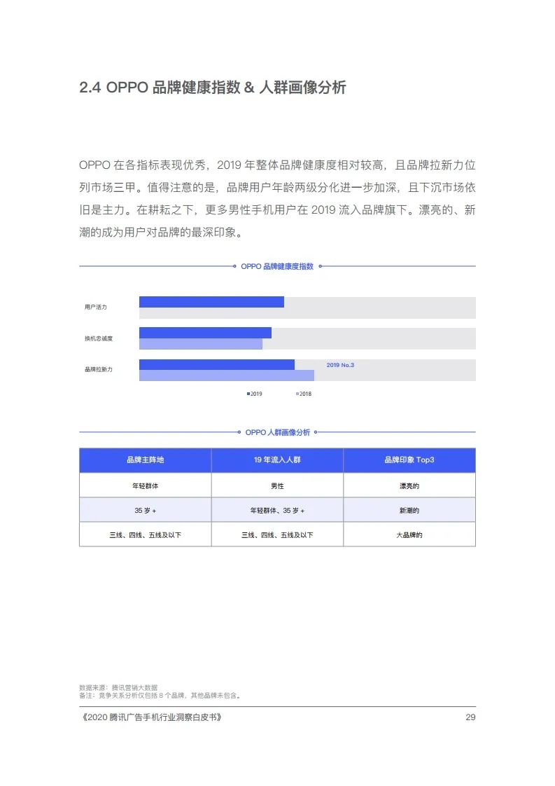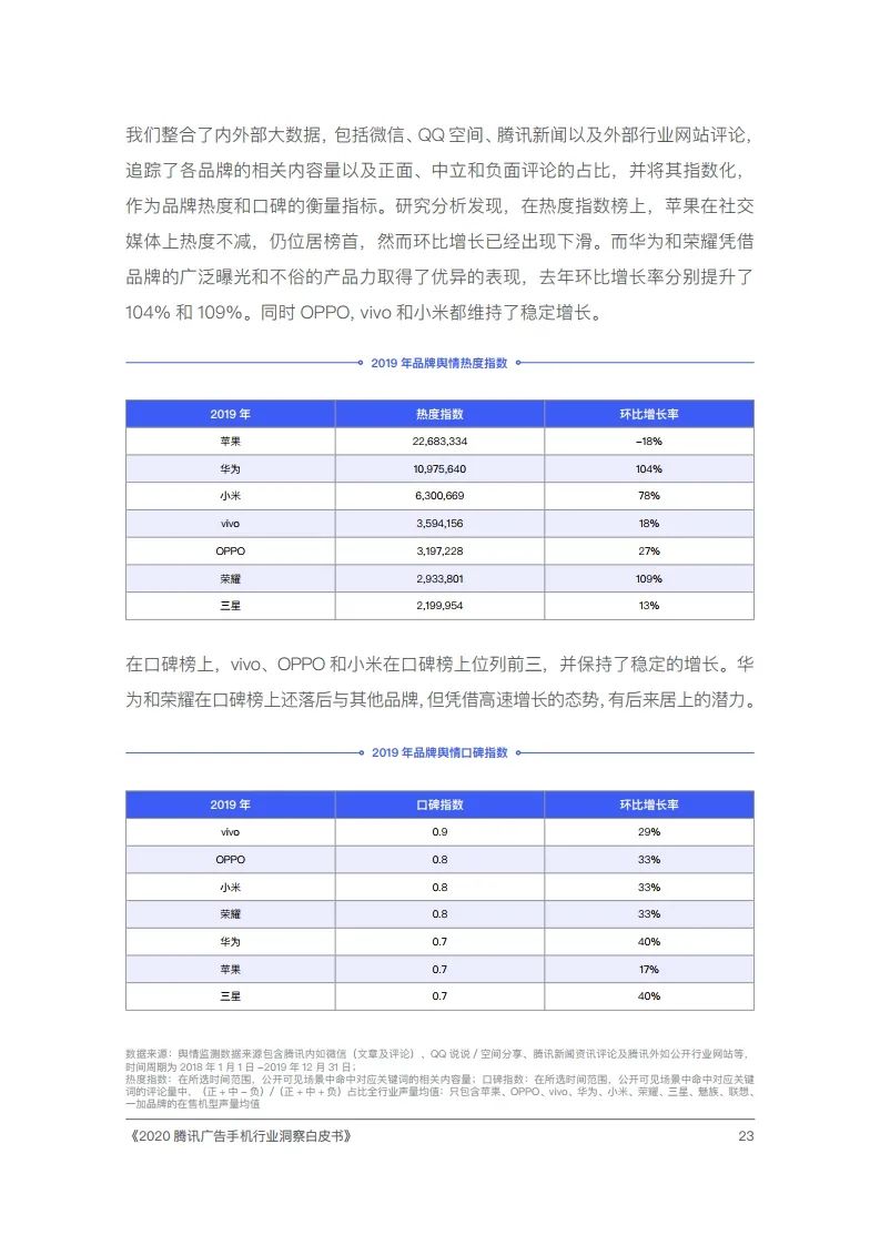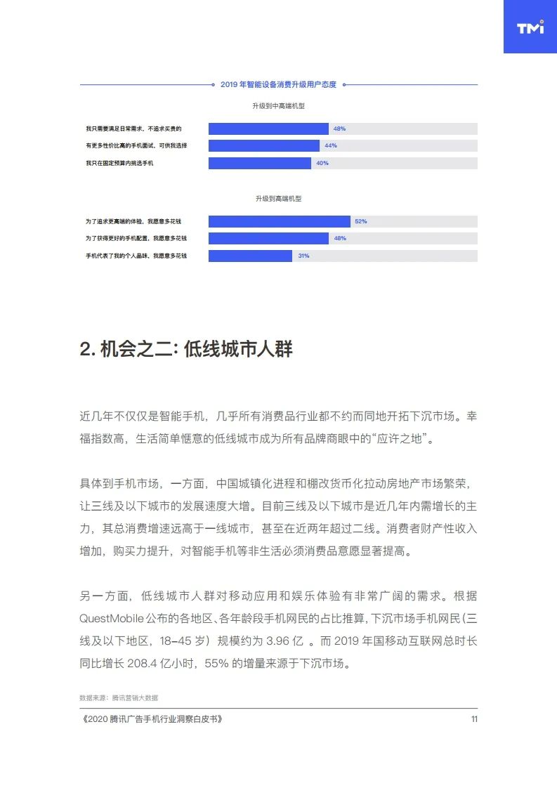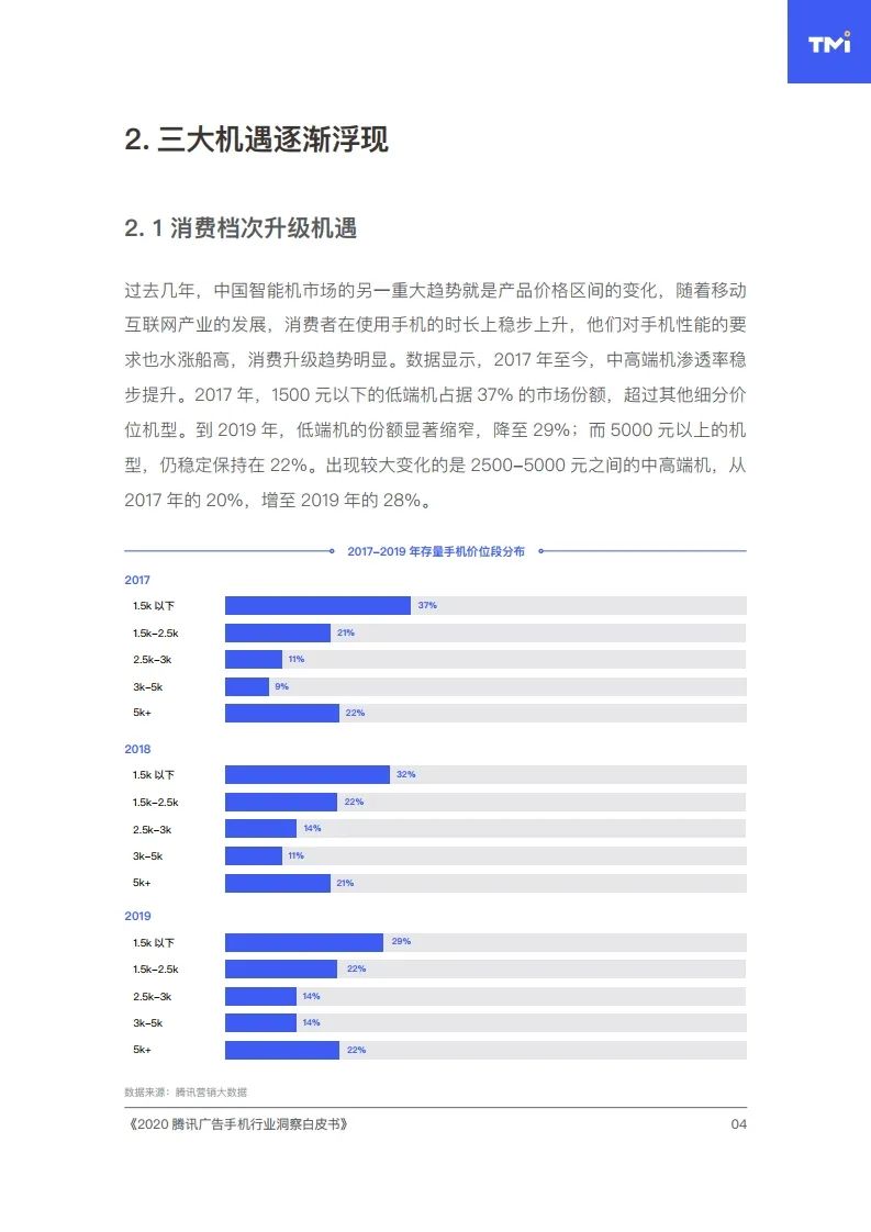 在此背景下,腾讯营销洞察(TMI)发布《2020腾讯手机行业洞察白皮书》。对于各品牌厂商,如何回归本源、深耕细作,在逆境中蛰伏,保存实力和市场份额,并在此基础上,稳守反击,抓住5G换机潮将是他们在2020年的主题。本报告发挥腾讯营销洞察(TMI)的大数据优势,力图层层剥茧,看清现象之下的本质,洞察噪音之中的真知,为读者提供化危机为生机、新机的灵感和证据。