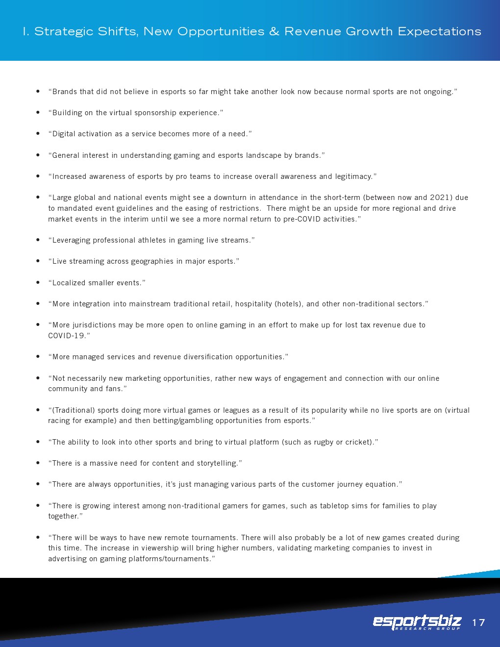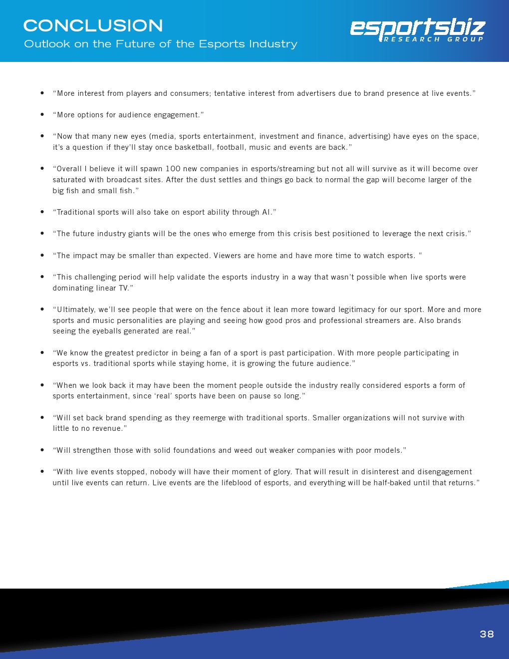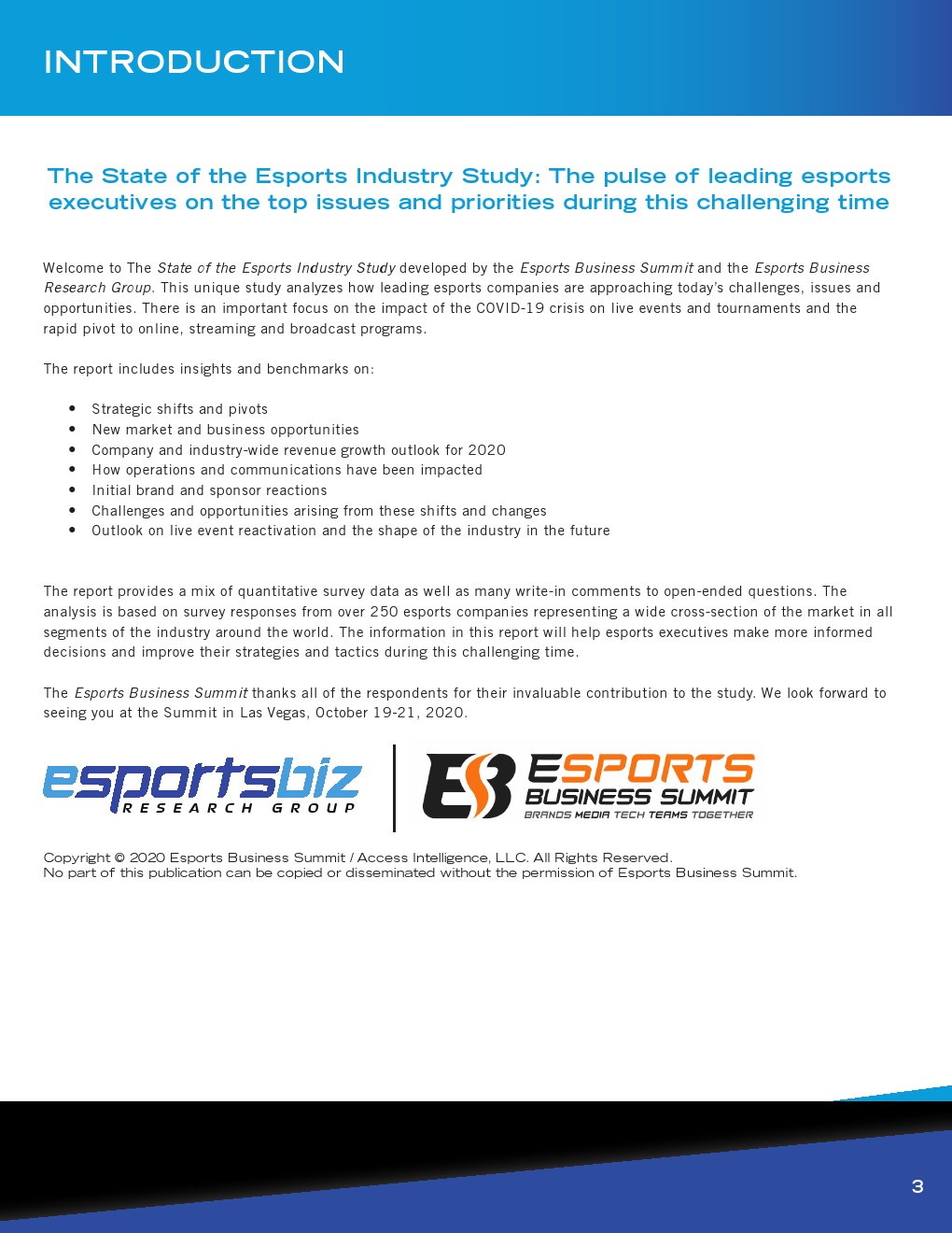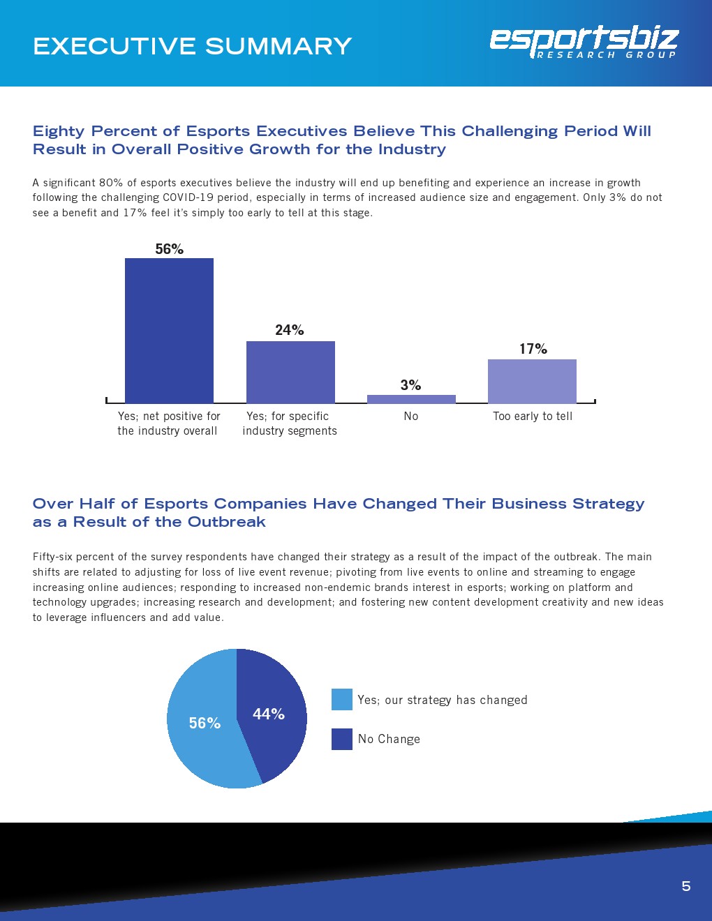 Esports Business Summit 和 Esports Business Research Group发布了“2020年电子竞技行业报告”。大多数(56%)的电竞公司已经因为新冠肺炎疫情而改变了他们的商业战略。