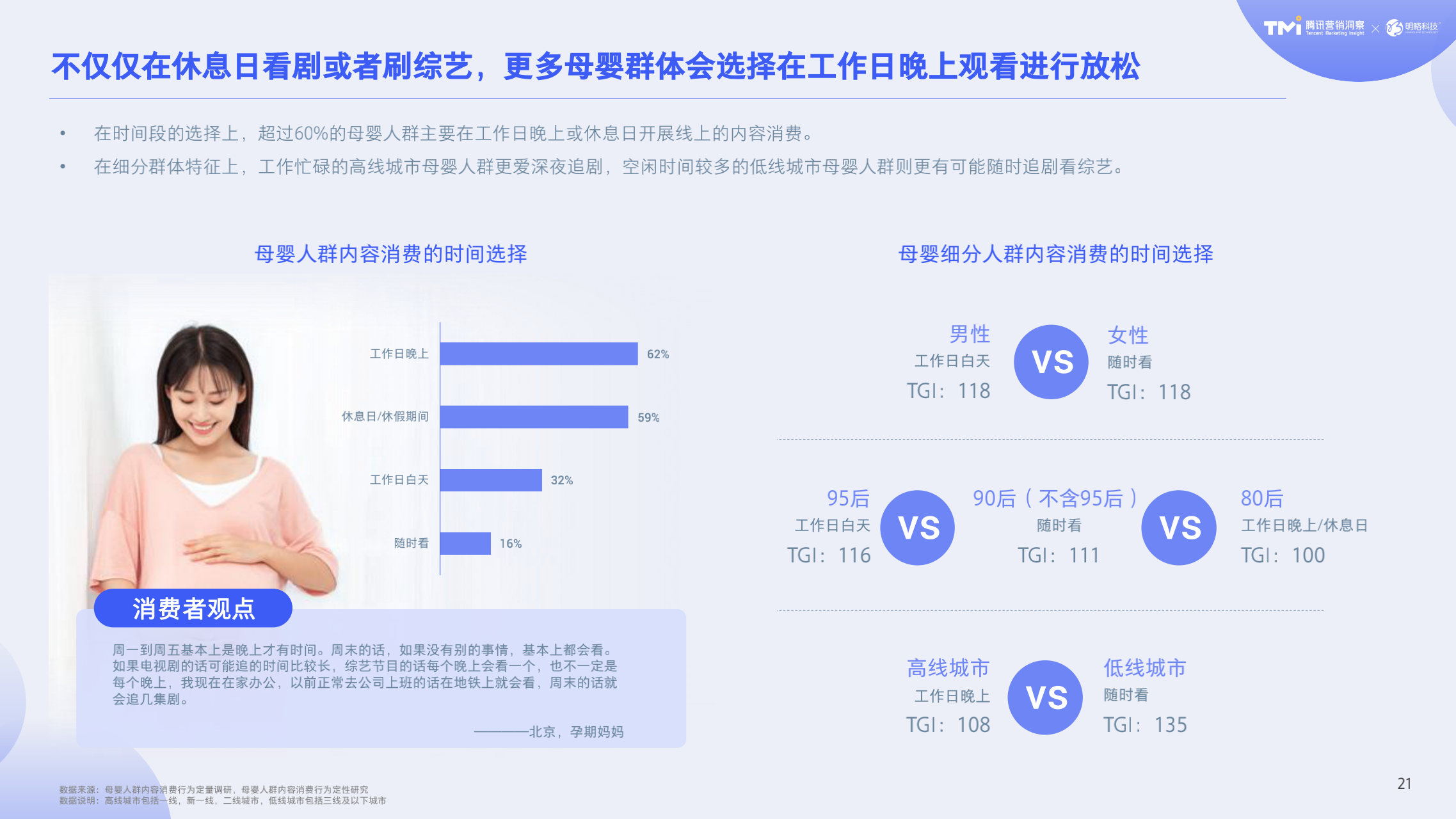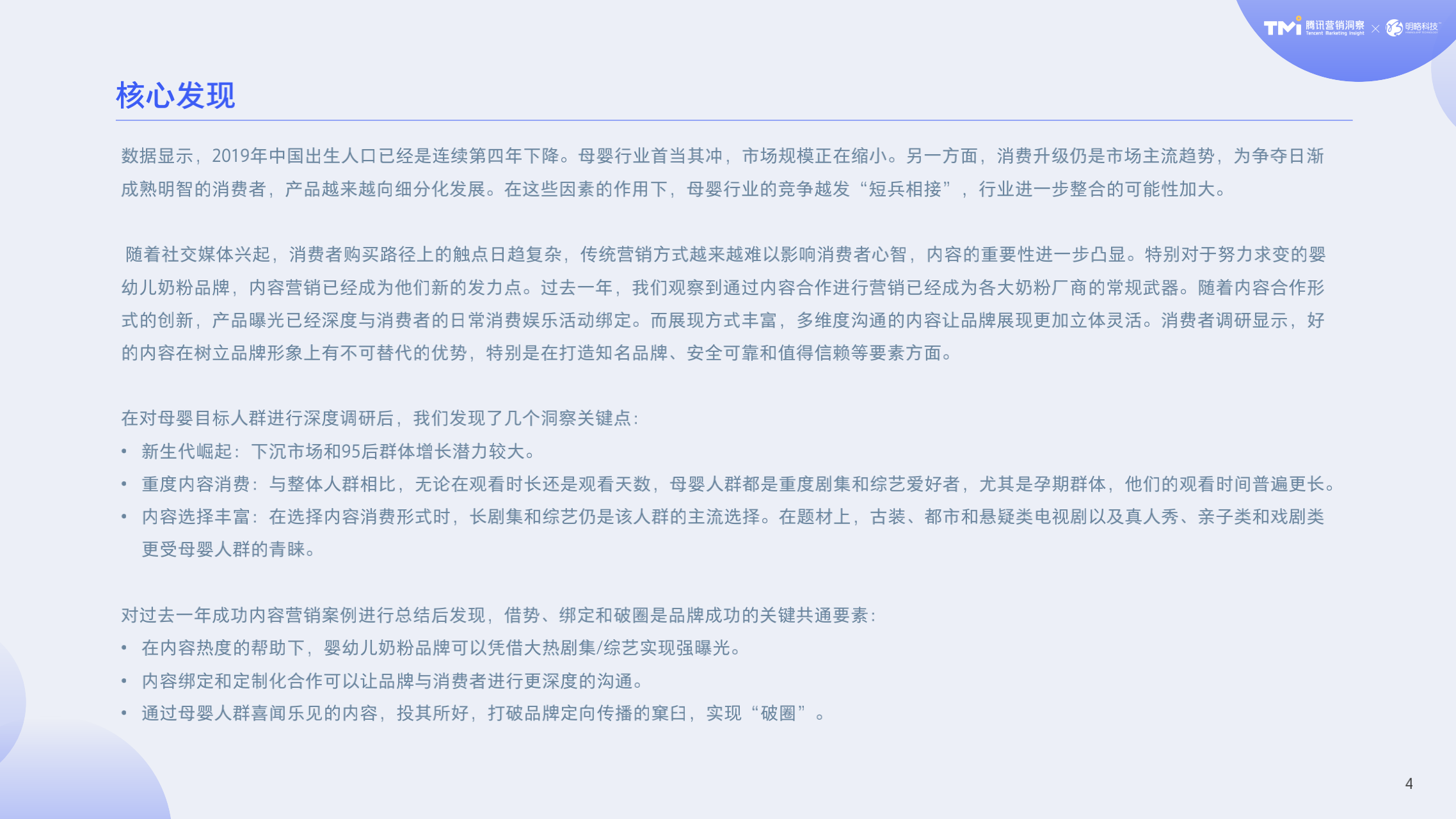 在此背景下,腾讯营销洞察(TMI)联合明略科技对母婴消费者开展了深度的定性和定量调研,结合腾讯营销大数据,发布《2020母婴行业内容营销洞察》,试图发现新一代母婴人群在内容消费中的偏好和行为模式,帮助企业有的放矢,精准覆盖目标人群。此外,还对广告主进行了深访调研,结合成功营销案例,希望从实战层面给读者更多启示。