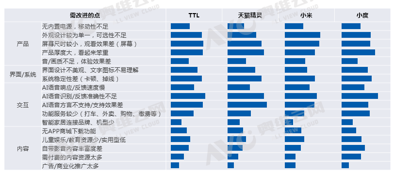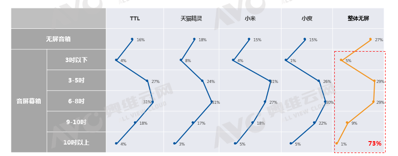 奥维云网(AVC)对1000个现有音箱用户开展了消费者研究课题,通过研究发现:语言识别、交互精准性、系统稳定性以及产品外观方面槽点最多;在复购方面,屏幕音箱趋势性明显,且主要集中在6-8吋屏产品上,现有无屏音箱复购有屏音箱的转化率高达73%。