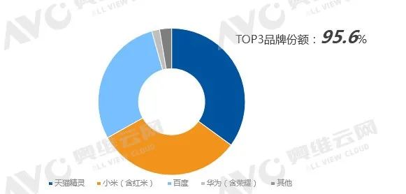 2. 天猫精灵、百度、小米三足鼎立,行业集中度进一步加剧,据奥维云网(AVC)推总数据,三家企业份额占比高达95.6%;