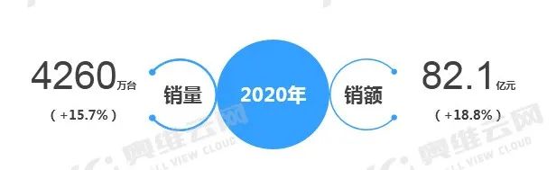 市场规模:2020年H1,销量1908.6万台,同比增长22.7%