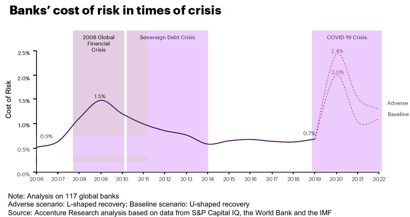 预计,全球银行将从现有信贷账簿中拨出高达2.4%的准备金,以弥补未偿还贷款的预期损失,几乎是2008年全球金融危机期间的两倍。全球范围的影响有所不同,这取决于政府资助的刺激计划的水平和新冠肺炎的严重程度。