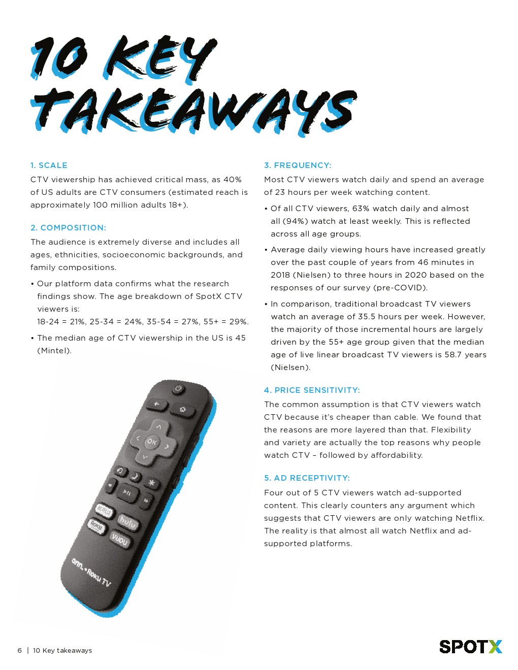 SpotX发布了最新的“联网电视报告”。联网电视(CTV)的普及率正在上升。自2019年以来,通过这些设备访问的流媒体时间大幅增长。60%的流媒体用户选择观看免费内容,广告支持的SVOD很可能会成为观众收看联网电视的一个重要部分。