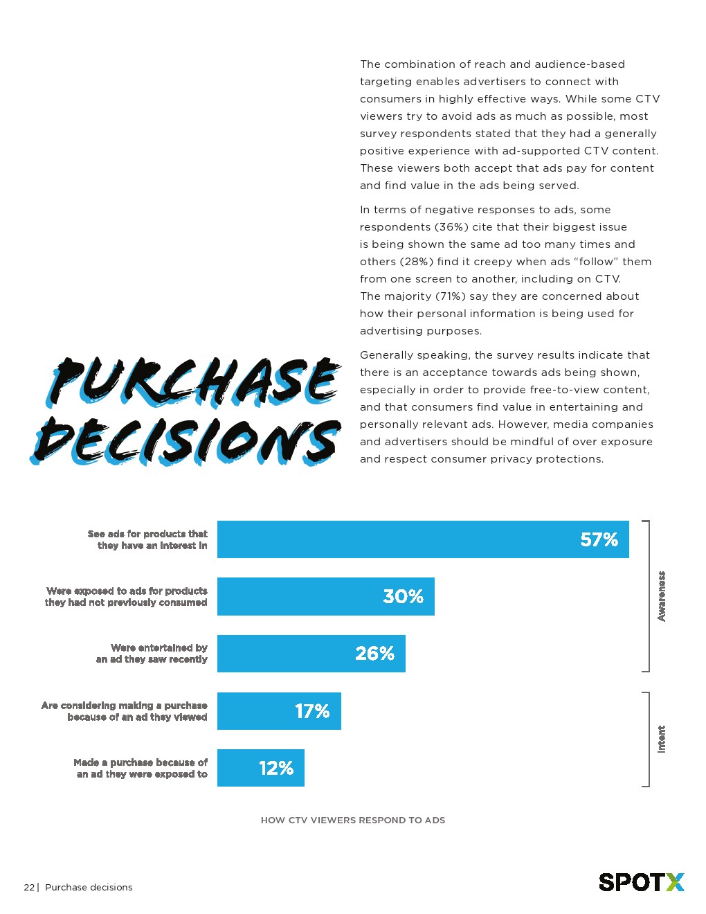 当谈到广告时,CTV观众的一个担忧是他们的隐私:71%的受访者表示,他们担心自己的个人信息被用于广告目的;28%的受访者认为这与广告从一个屏幕到另一个屏幕有关。