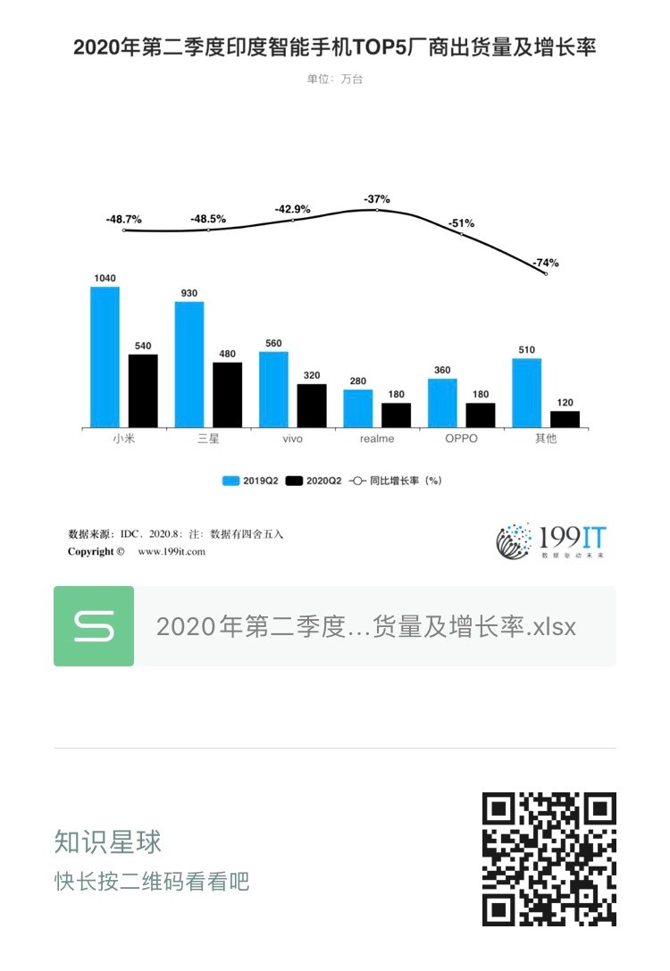 - 2020年Q2印度智能手机主要厂商出货量及增长率(附原数据表)