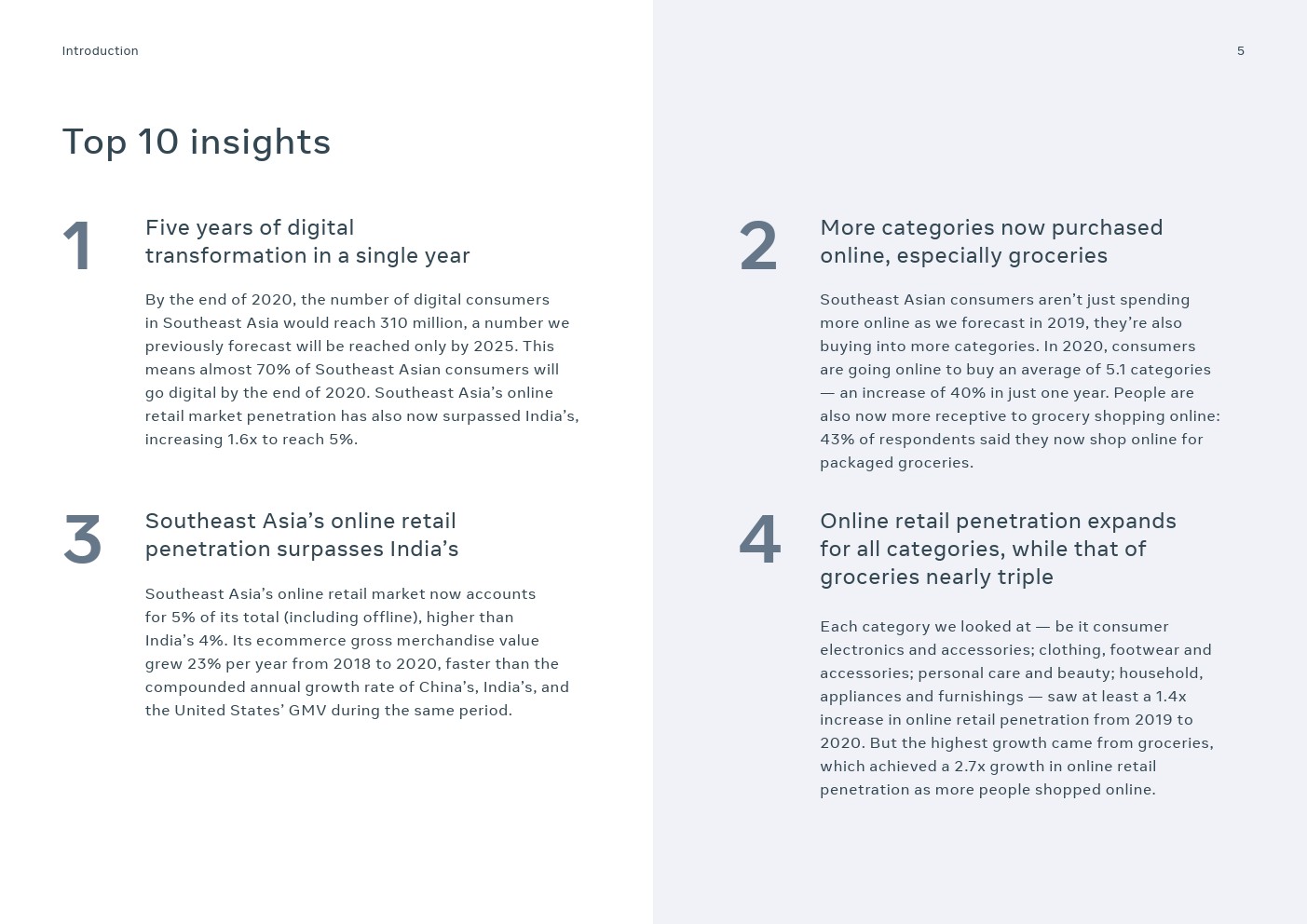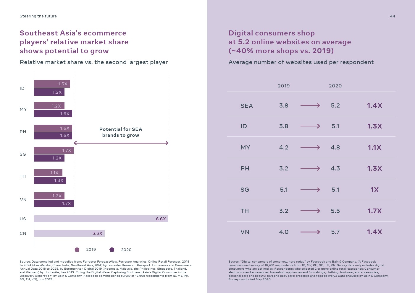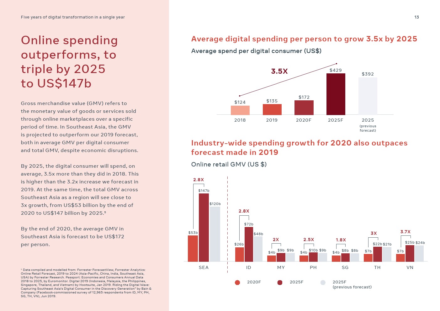 到2020年底,东南亚的网络消费者数量将达到3.1亿,之前预测这个数字要到2025年才能达到。这意味着到2020年底,近70%的东南亚消费者将实现数字化。东南亚的网上零售市场普及率已经超过印度,增长了1.6倍,达到5%。