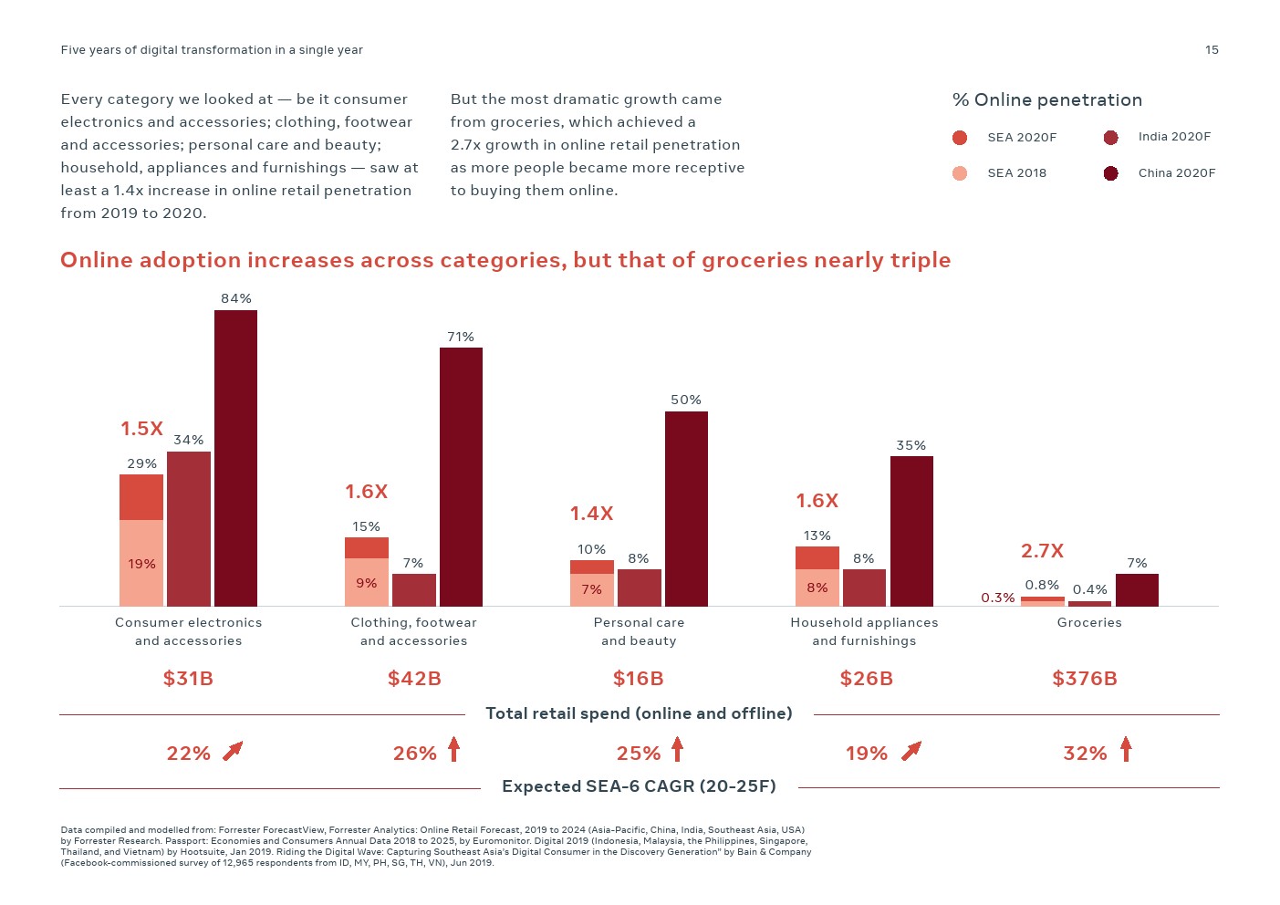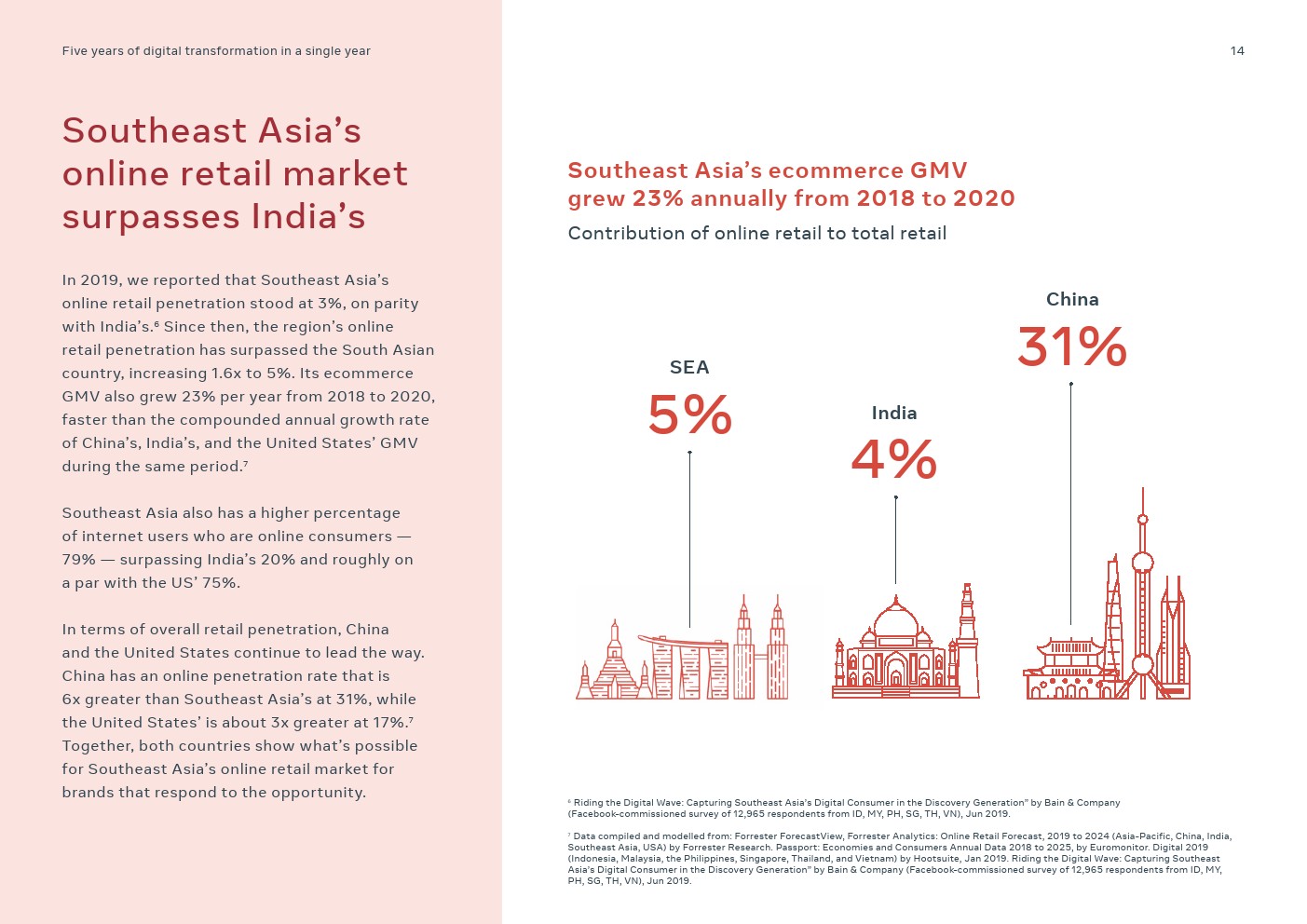 东南亚的线上零售市场目前占其总零售市场的5%,高于印度的4%。