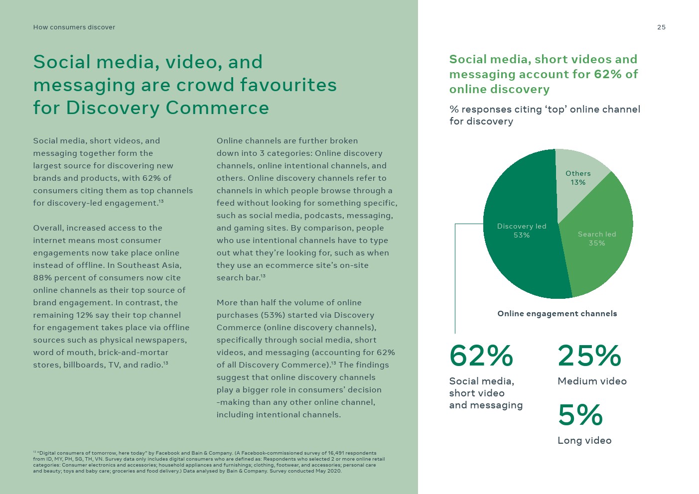 社交媒体、短视频和短信是人们发现新品牌和新产品最受欢迎的渠道,62%的消费者将其作为首选。