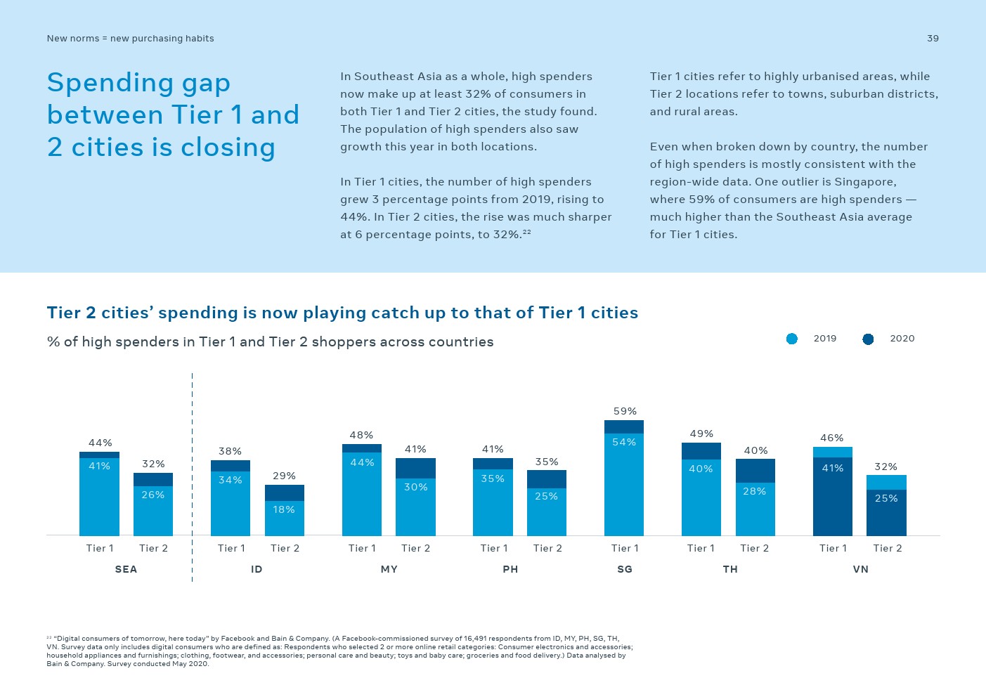 研究发现,在整个东南亚,一线和二线城市的高消费人群现在至少占消费者的52%。