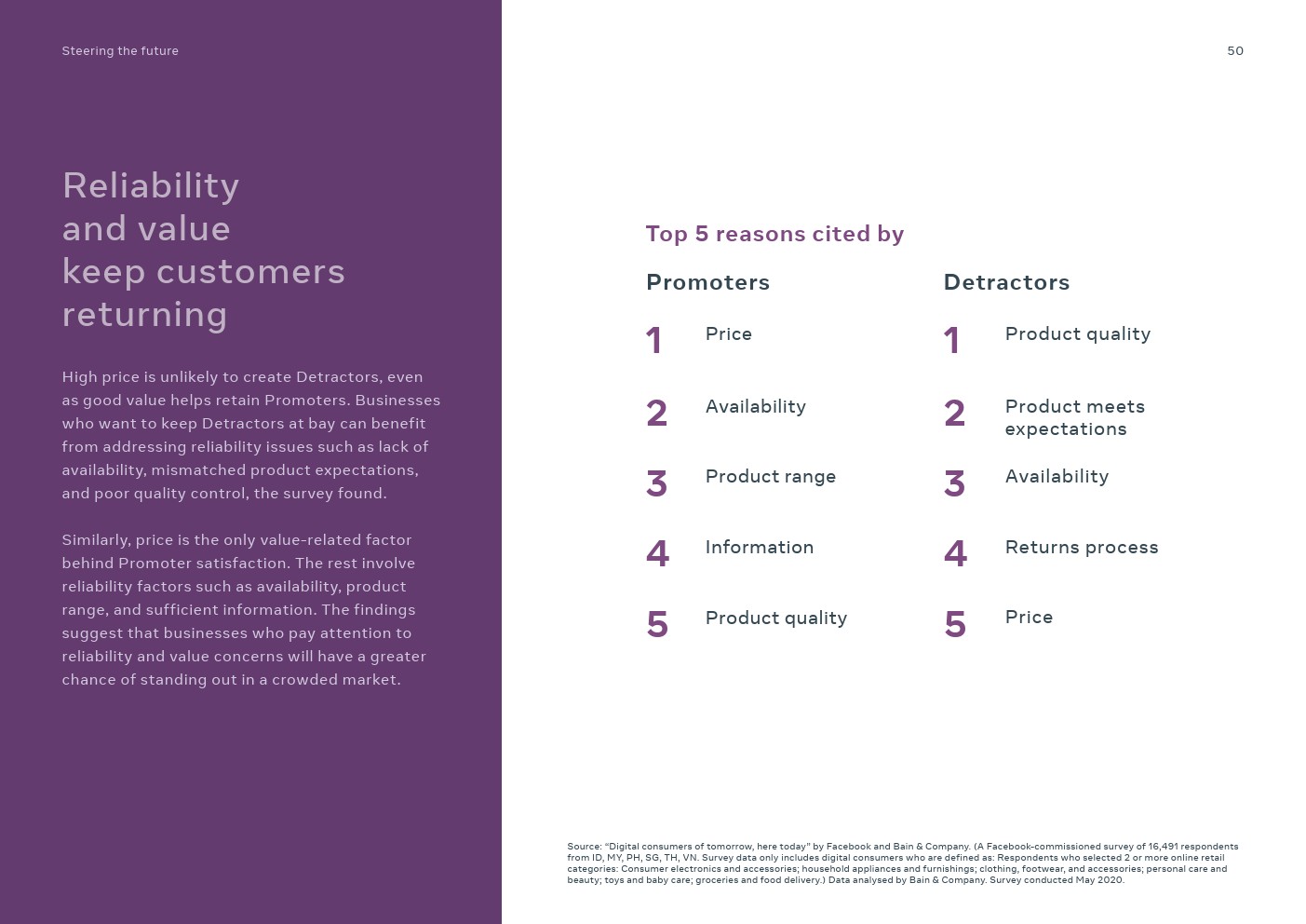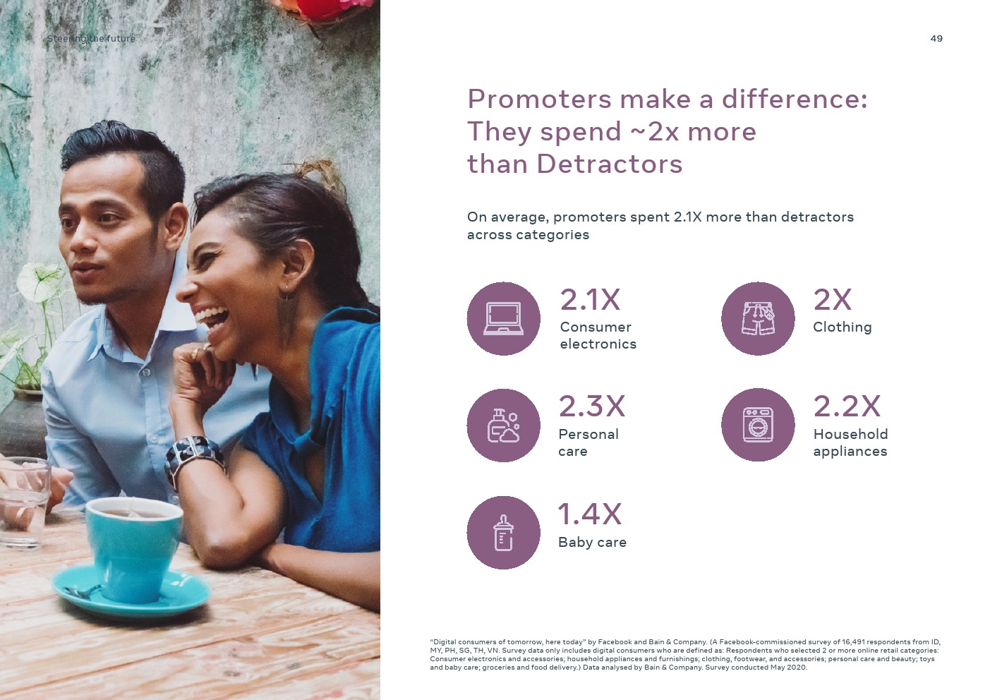 喜欢推广产品额消费者的支出是更愿意发布差评的消费者的2倍。高性价比和可靠性有助于留住推广者。