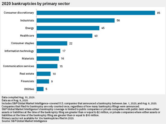 根据标普全球市场情报(S&P Global Market Intelligence)数据显示,截至8月9日,已有424家公司申请破产,这超过了自2010年以来任何可比时期的破产申请数量。