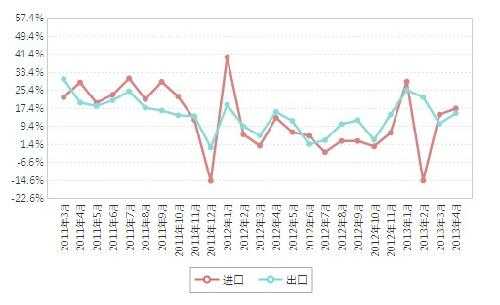 海关统计显示,4月份,我国进出口总值2.23万亿元人民币(折合3559.6亿美元),扣除汇率因素,增长15.7%。其中出口1.17万亿元人民币(折合1870.6亿美元),增长14.7%;进口1.06万亿元人民币(折合1689亿美元),增长16.8%;贸易顺差1145.3亿元人民币(折合181.6亿美元),收窄1.7%。一般贸易、加工贸易增长平稳。