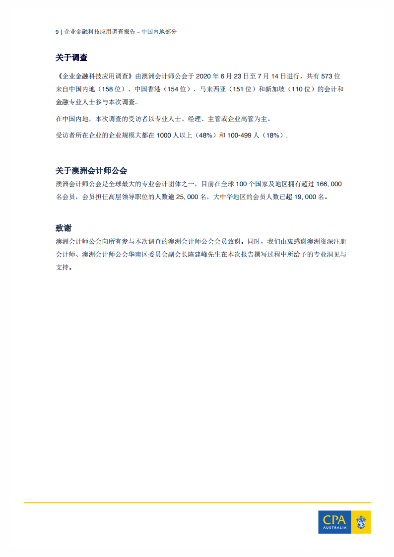 全球最大专业会计团体之一 – 澳洲会计师公会今日发布的《企业金融科技应用调查》显示,受益于金融科技发展规划及一系列创新战略的推动,中国企业在金融科技应用领域领先亚洲区其他受访市场。