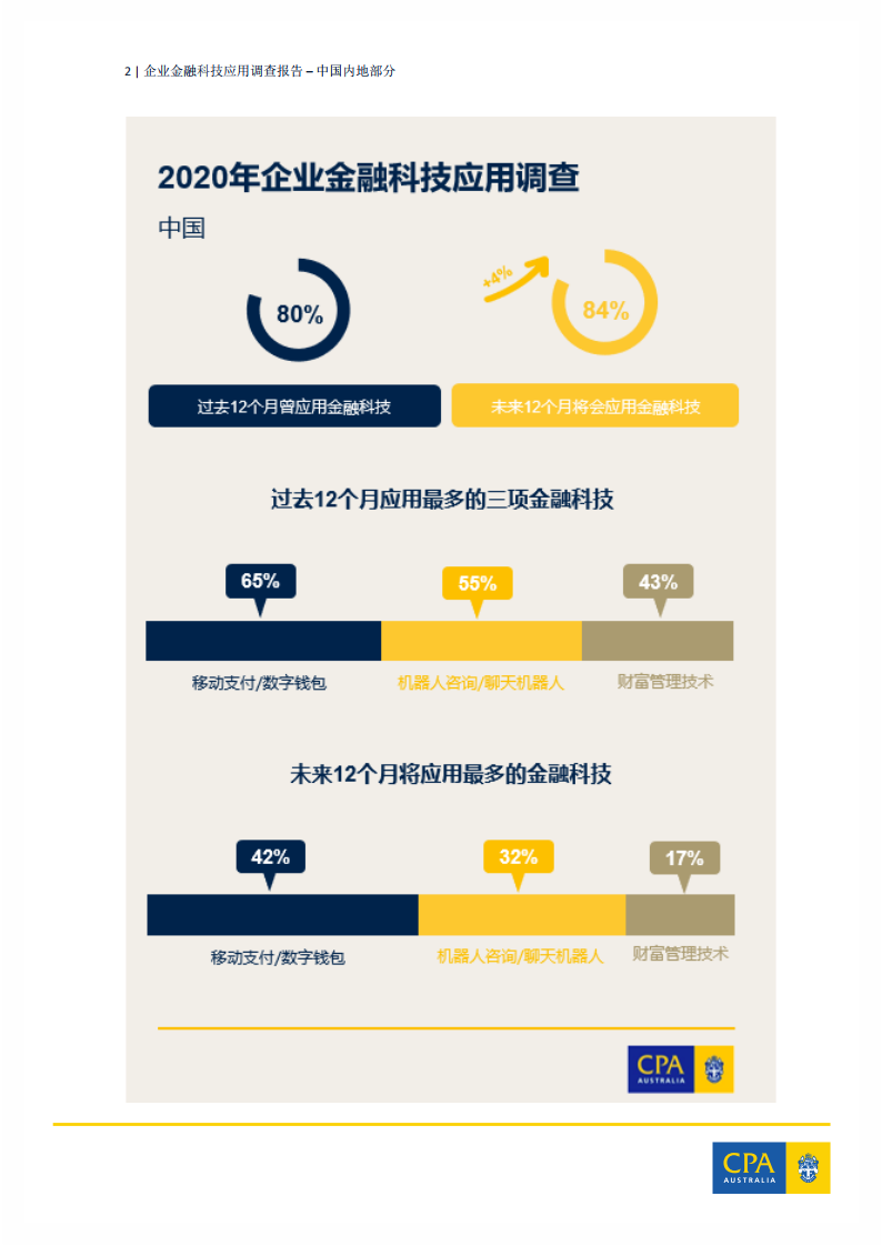 调查数据显示,84%的中国受访者表示,所在企业未来12个月内将至少使用一种金融科技产品或服务。