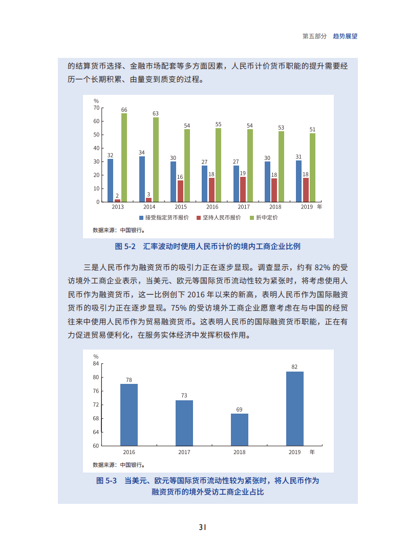 截至2019年末,人民银行在中国大陆以外的25个国家和地区设立了人民币清算行,使人民币使用的安全性不断增强,交易成本也在下降。