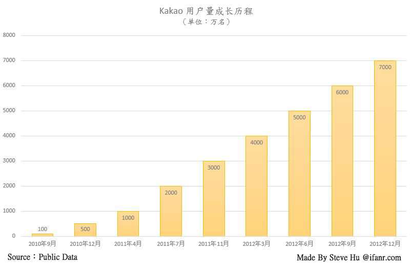 Kakao Talk 是在 2010 年的 3 月正式发布的,下表罗列了 Kakao Talk 的用户成长历程。
