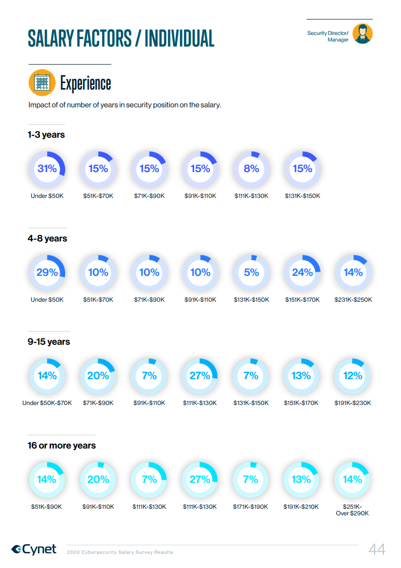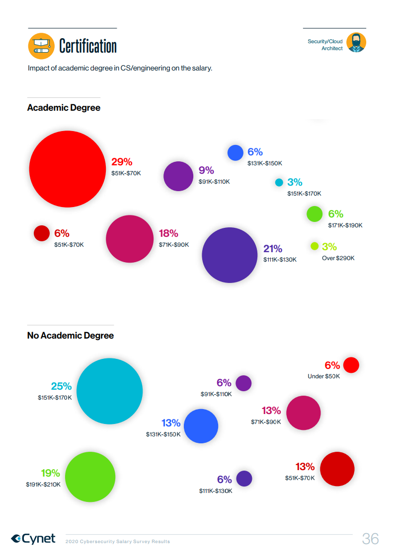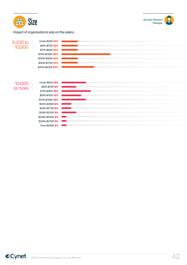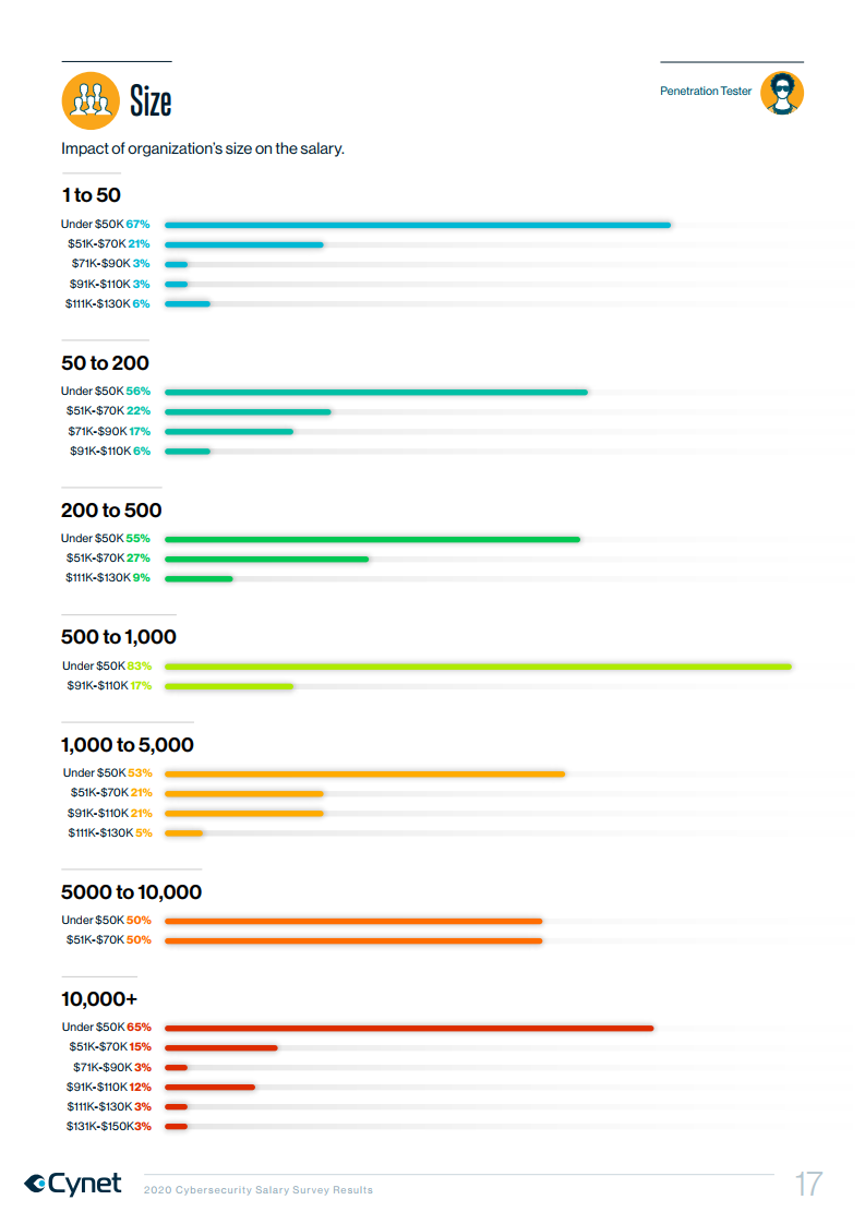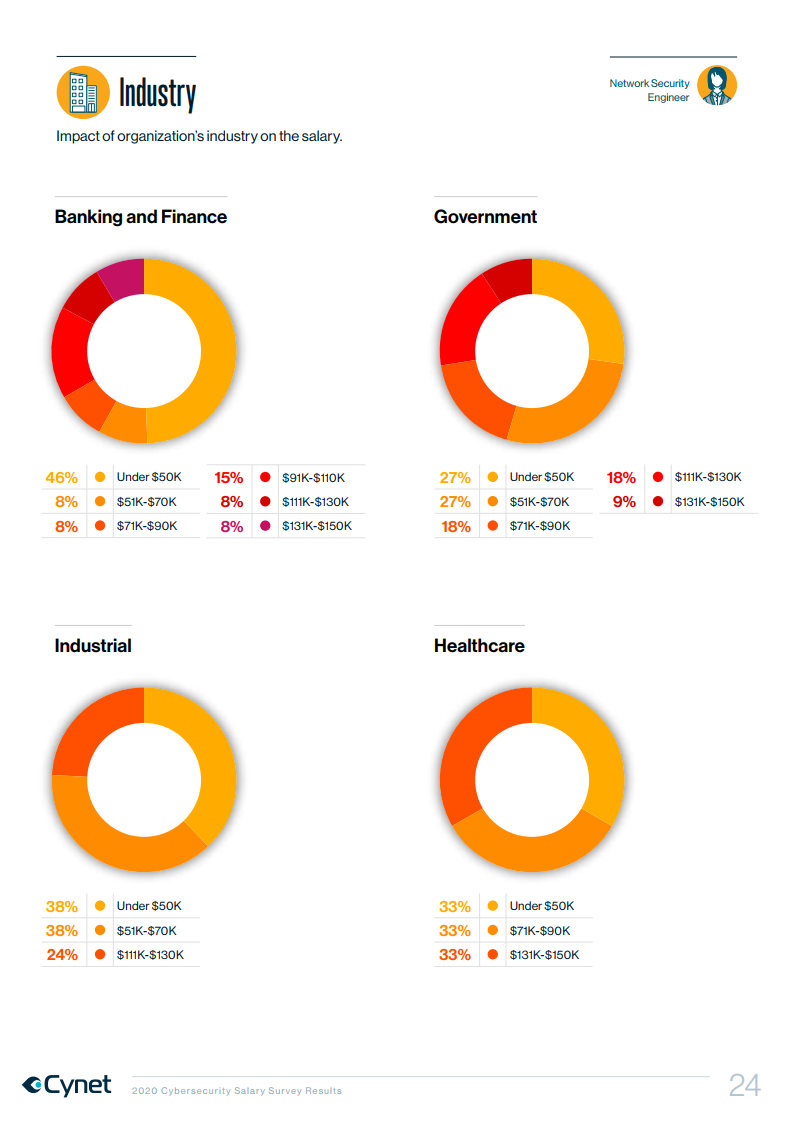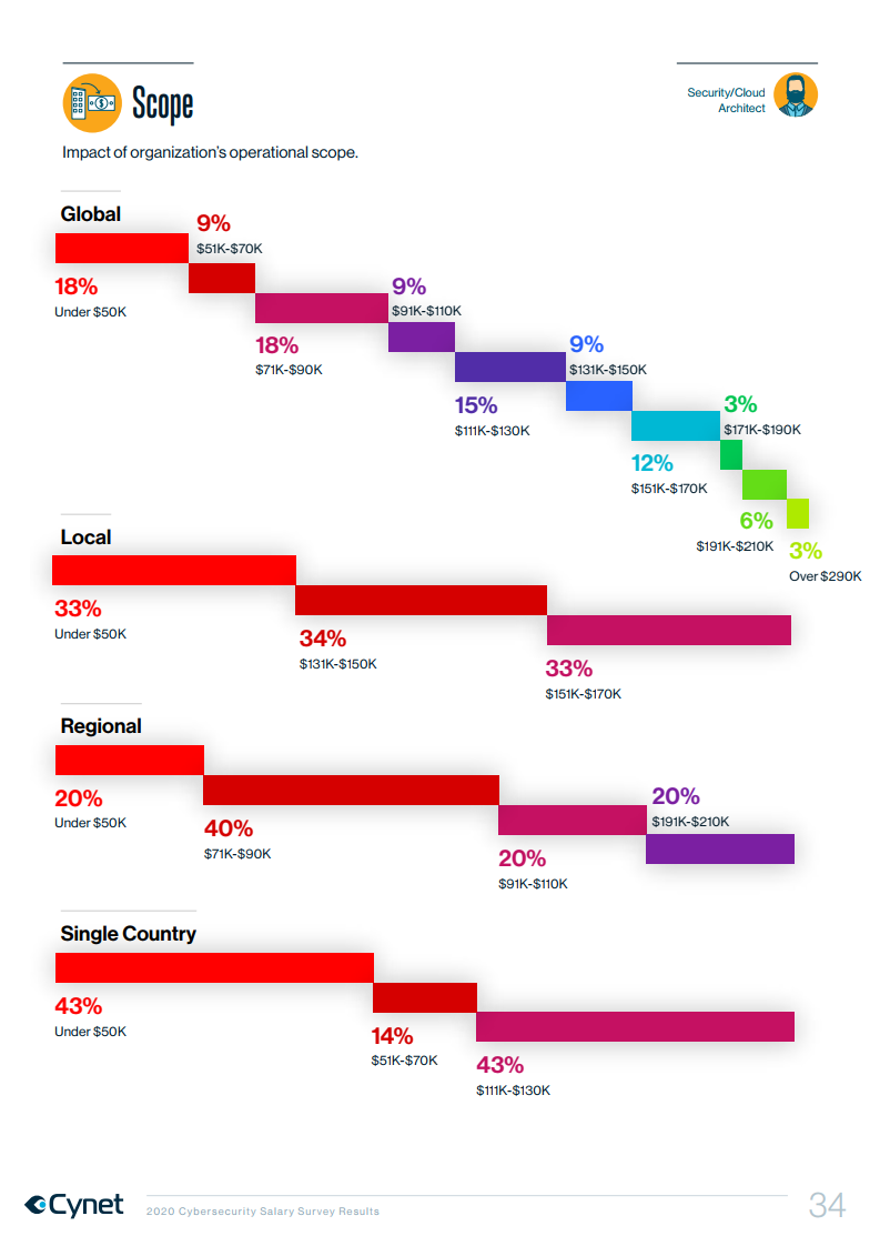 该份报告统计得到数据,形成五个安全职位的薪水调查结果,分别是安全分析师/威胁情报专员、安全/云安全架构师、网络安全工程师、渗透测试人员和安全总监/经理。