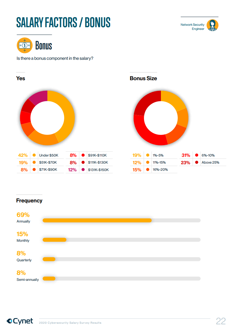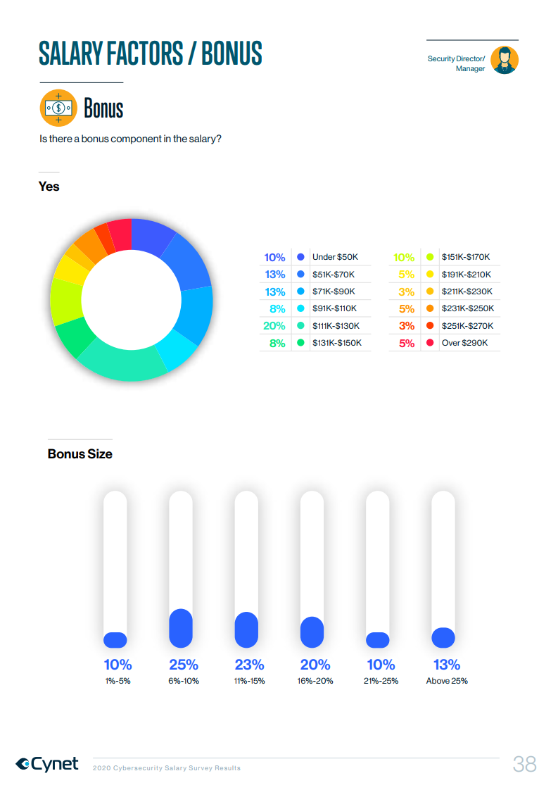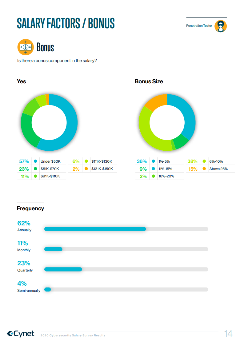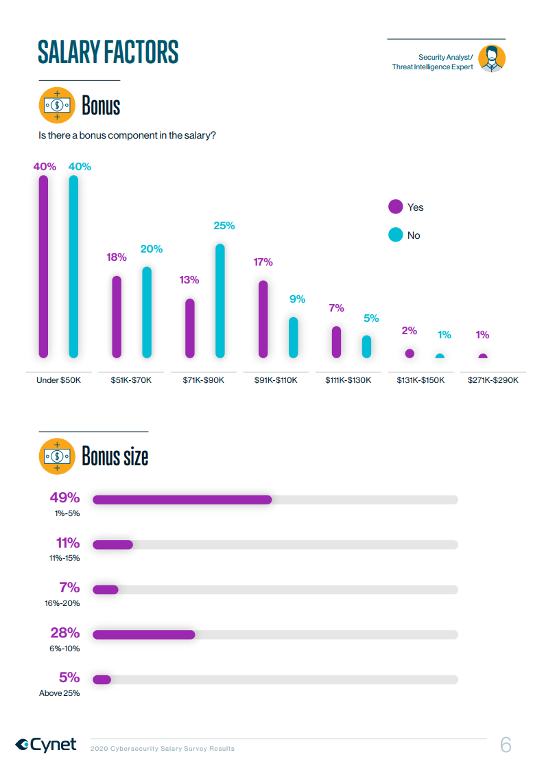 奖金十分常见。除安全分析师外,所有其他职位均包括定期奖金,年度奖金为1%-10%。