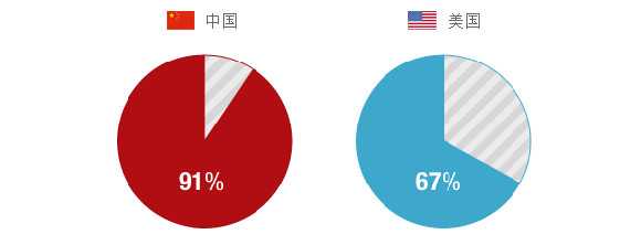 10、91%的中国网民都用社交媒体,相比而言美国的比重只有67%。