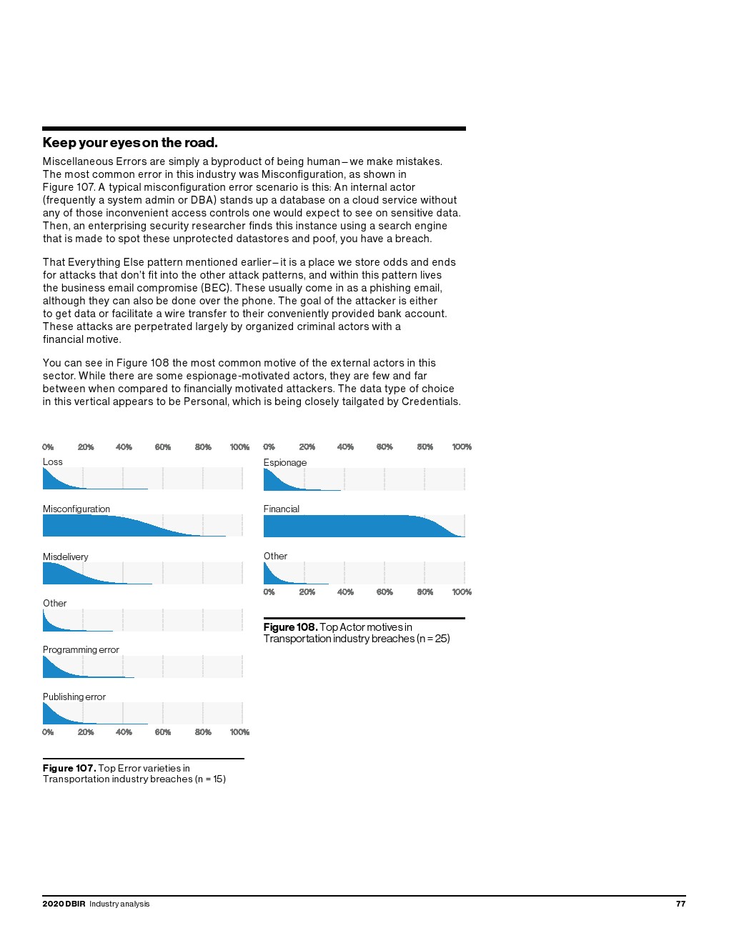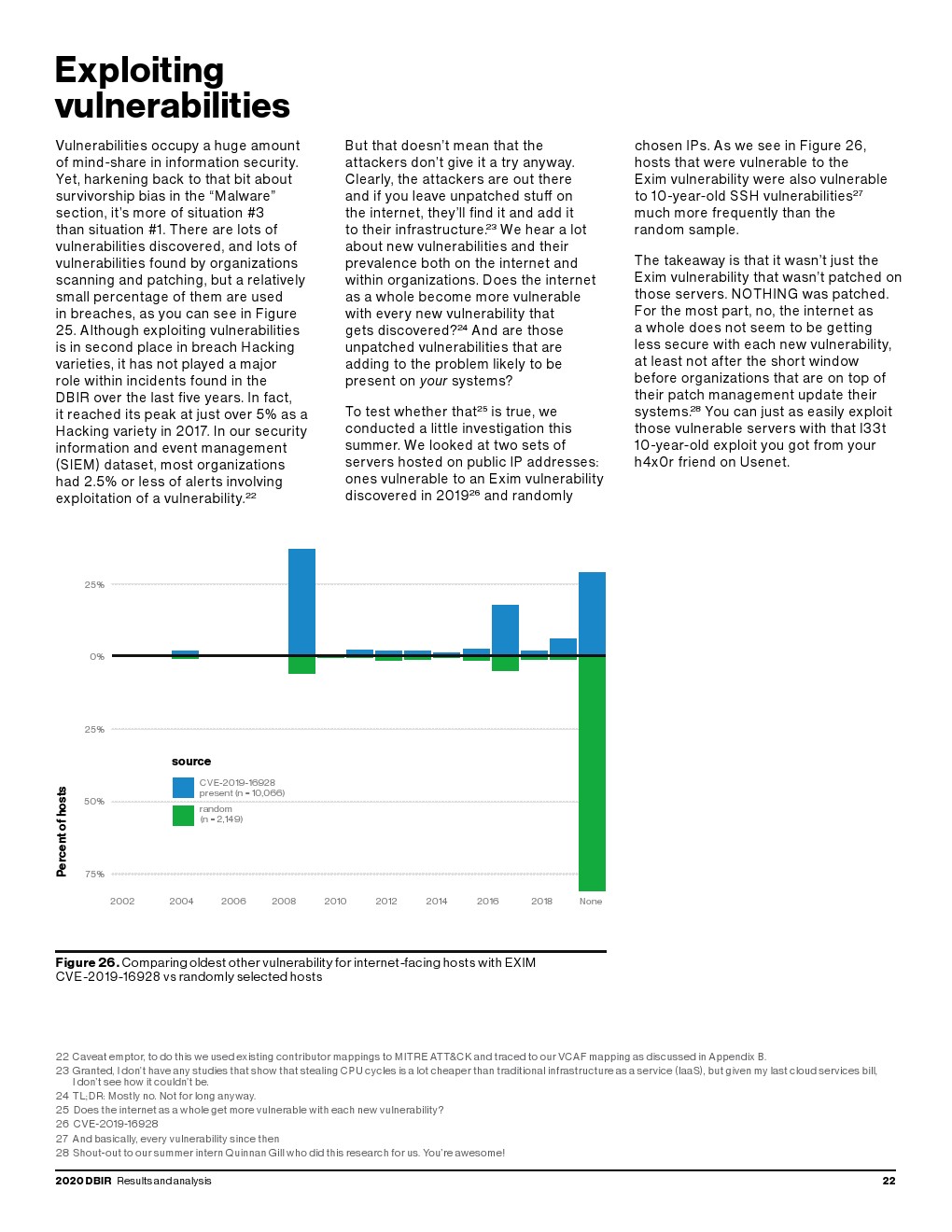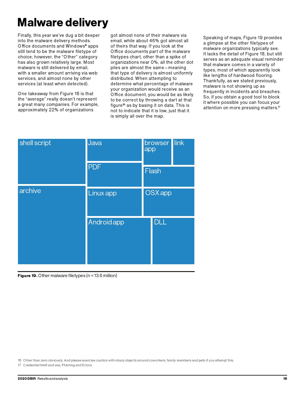 当许多人想到黑客攻击是如何进行的时,他们很可能会想象攻击者在系统上放置一个特洛伊木马程序,然后将其用作网络中的滩头阵地,从那里发动其他攻击,或者扩大当前的攻击。但是,Verizon的数据显示,这类恶意软件在2016年达到峰值,占所有漏洞的比例不到50%,此后下降到1/6(6.5%)。这说明企业在应对漏洞时存在配置错误和交付错误。