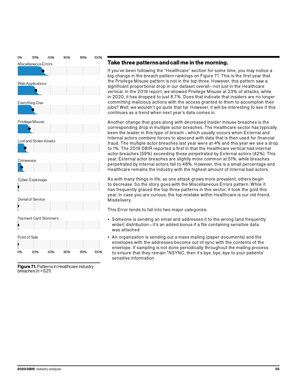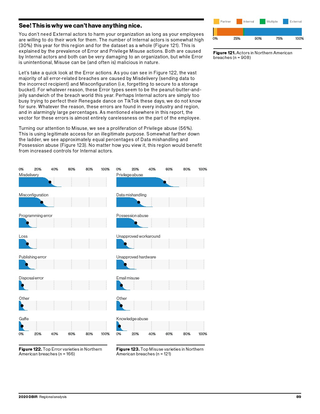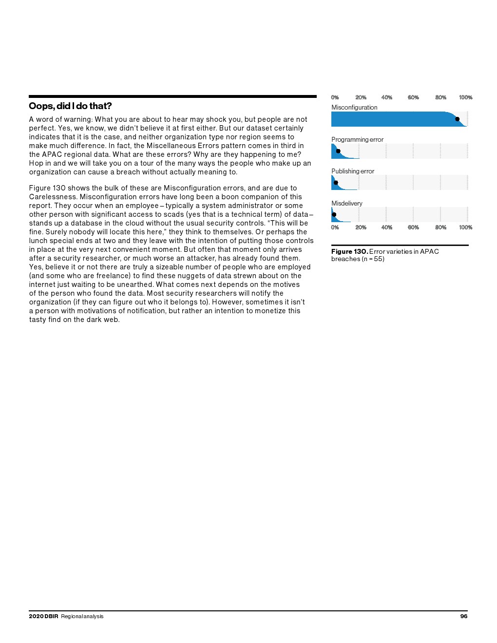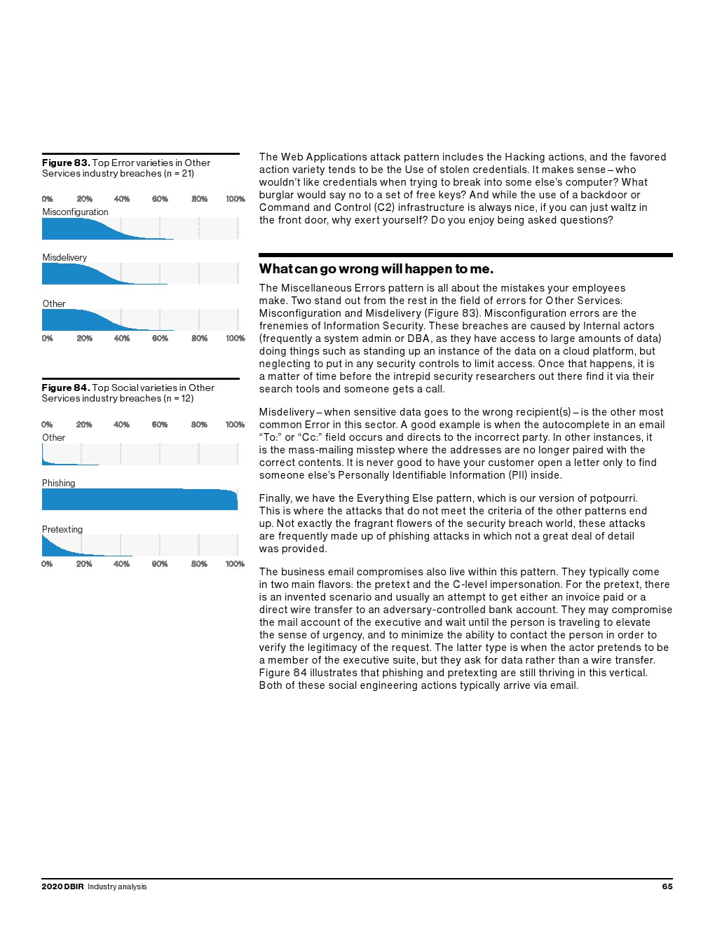 当许多人想到黑客攻击是如何进行的时,他们很可能会想象攻击者在系统上放置一个特洛伊木马程序,然后将其用作网络中的滩头阵地,从那里发动其他攻击,或者扩大当前的攻击。但是,Verizon的数据显示,这类恶意软件在2016年达到峰值,占所有漏洞的比例不到50%,此后下降到1/6(6.5%)。这说明企业在应对漏洞时存在配置错误和交付错误。