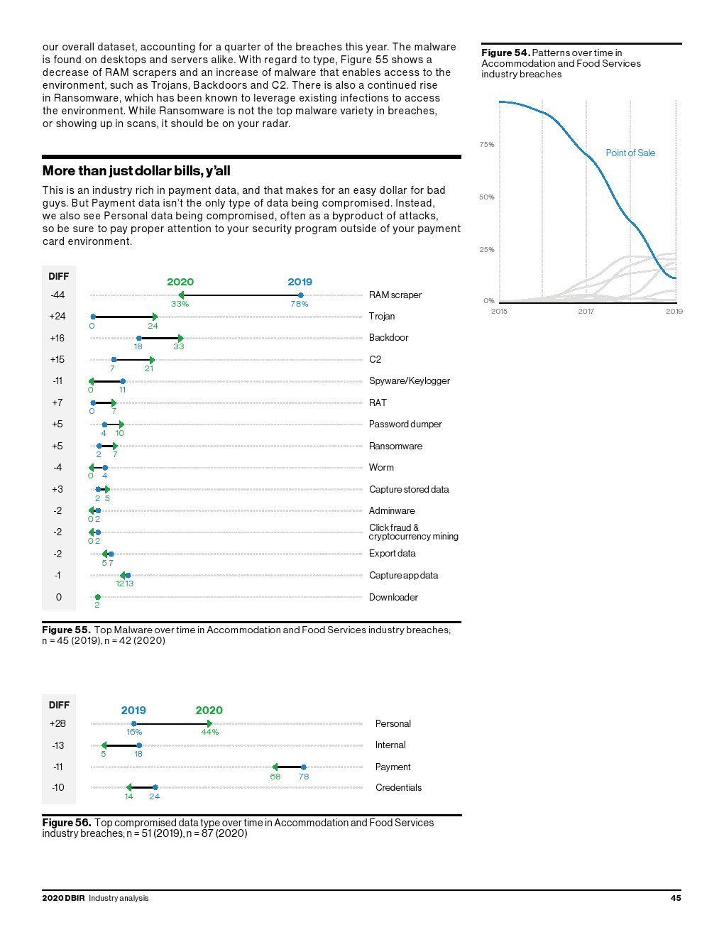 45%的漏洞与黑客有关,22%包含社交媒体攻击,17%涉及恶意软件。