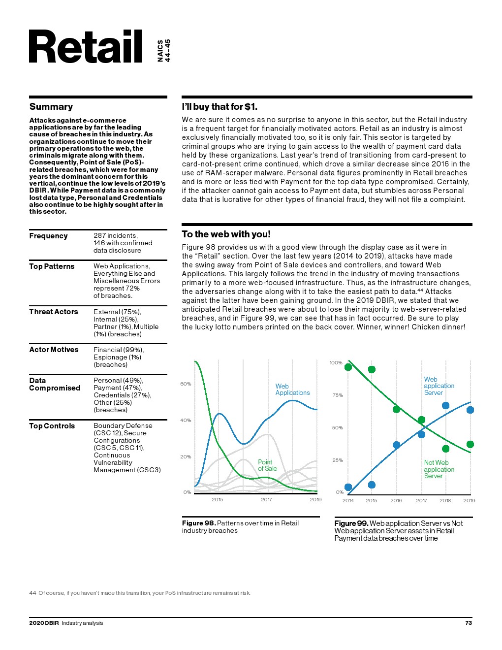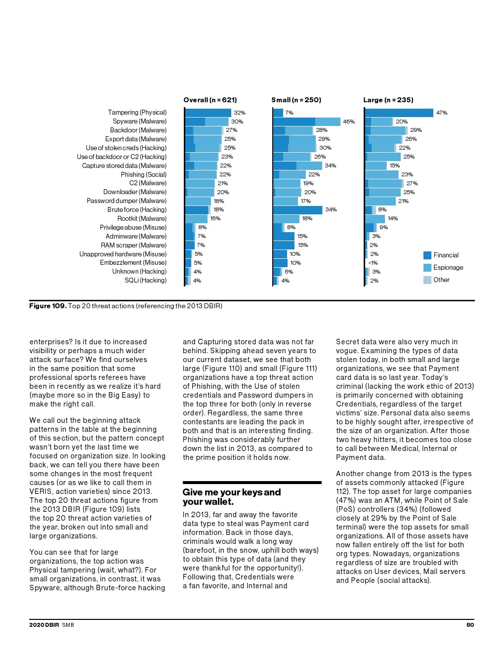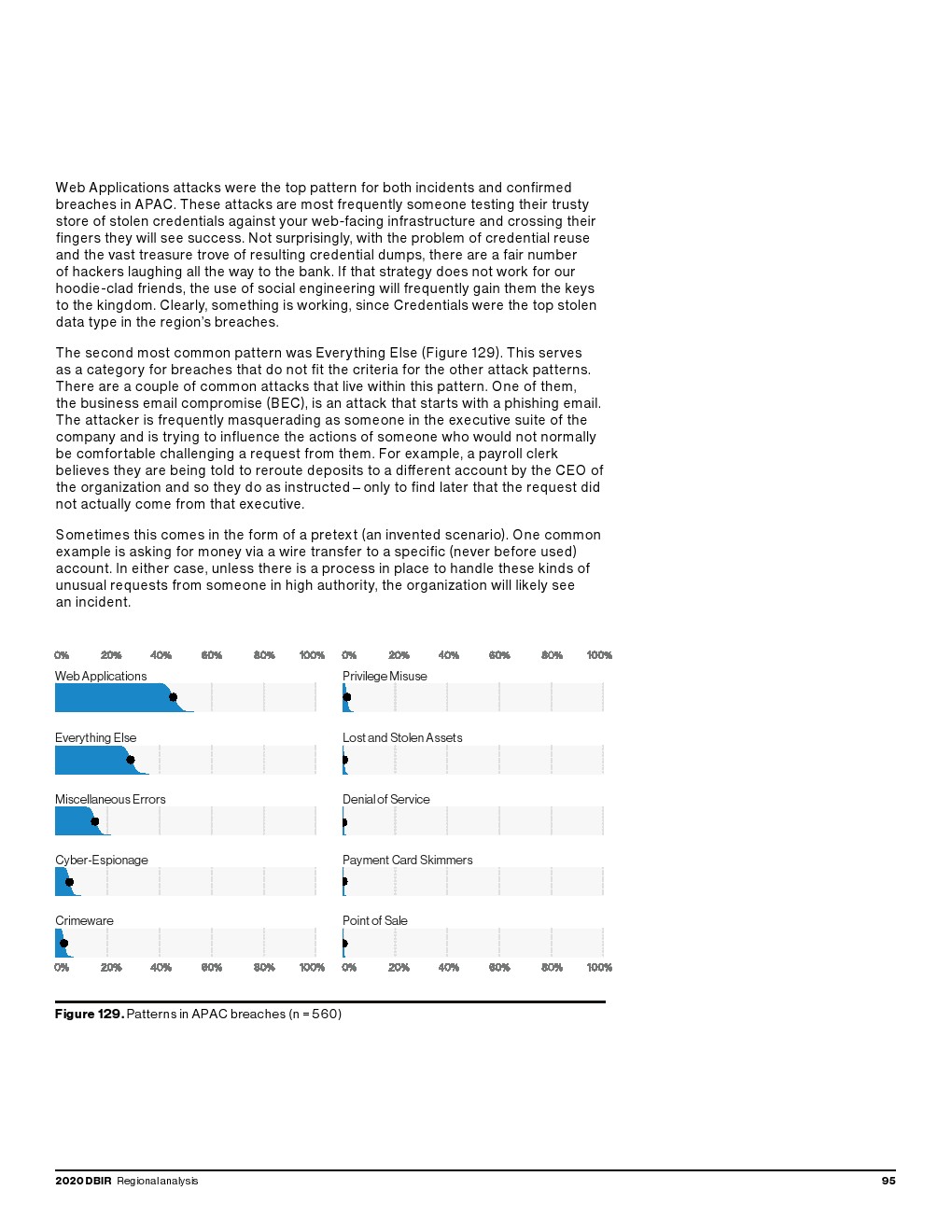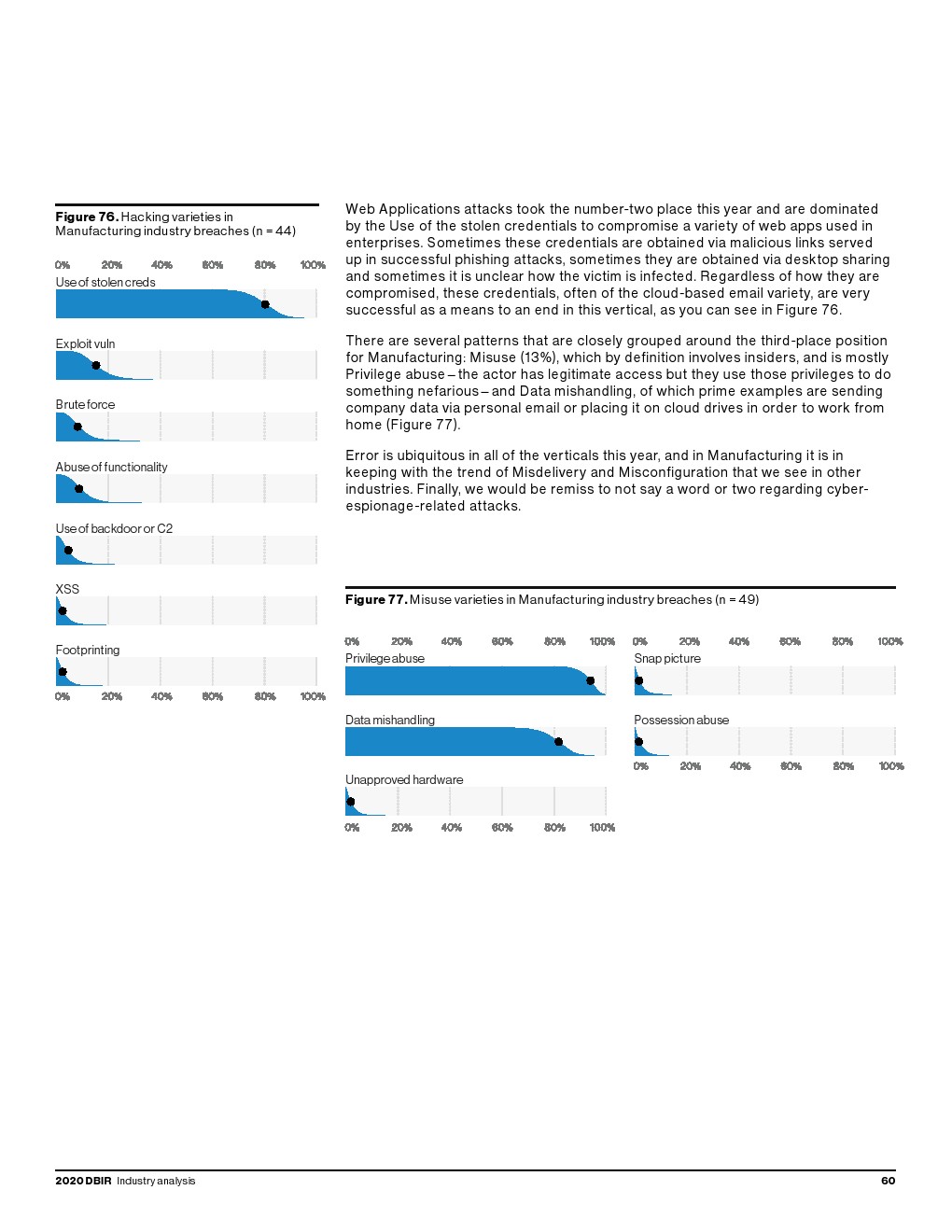 从数据泄露的动机来看,86%的漏洞是针对钱财的;43%的漏洞针对网络应用,37%的漏洞是为了窃取凭证。