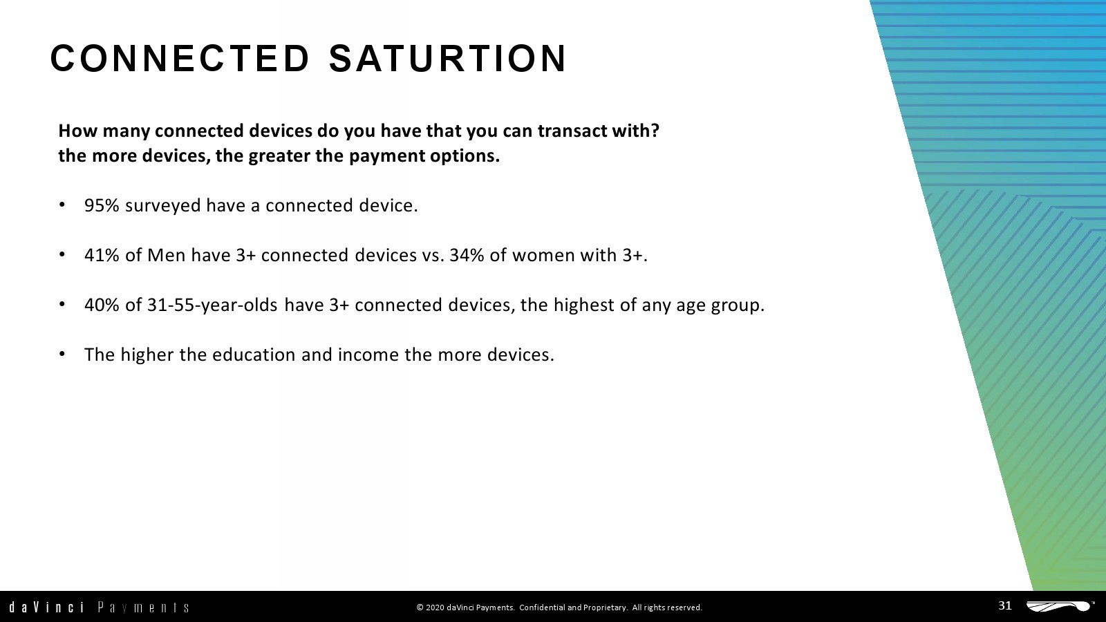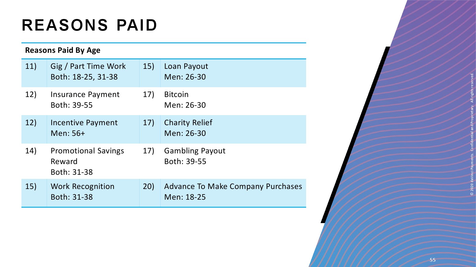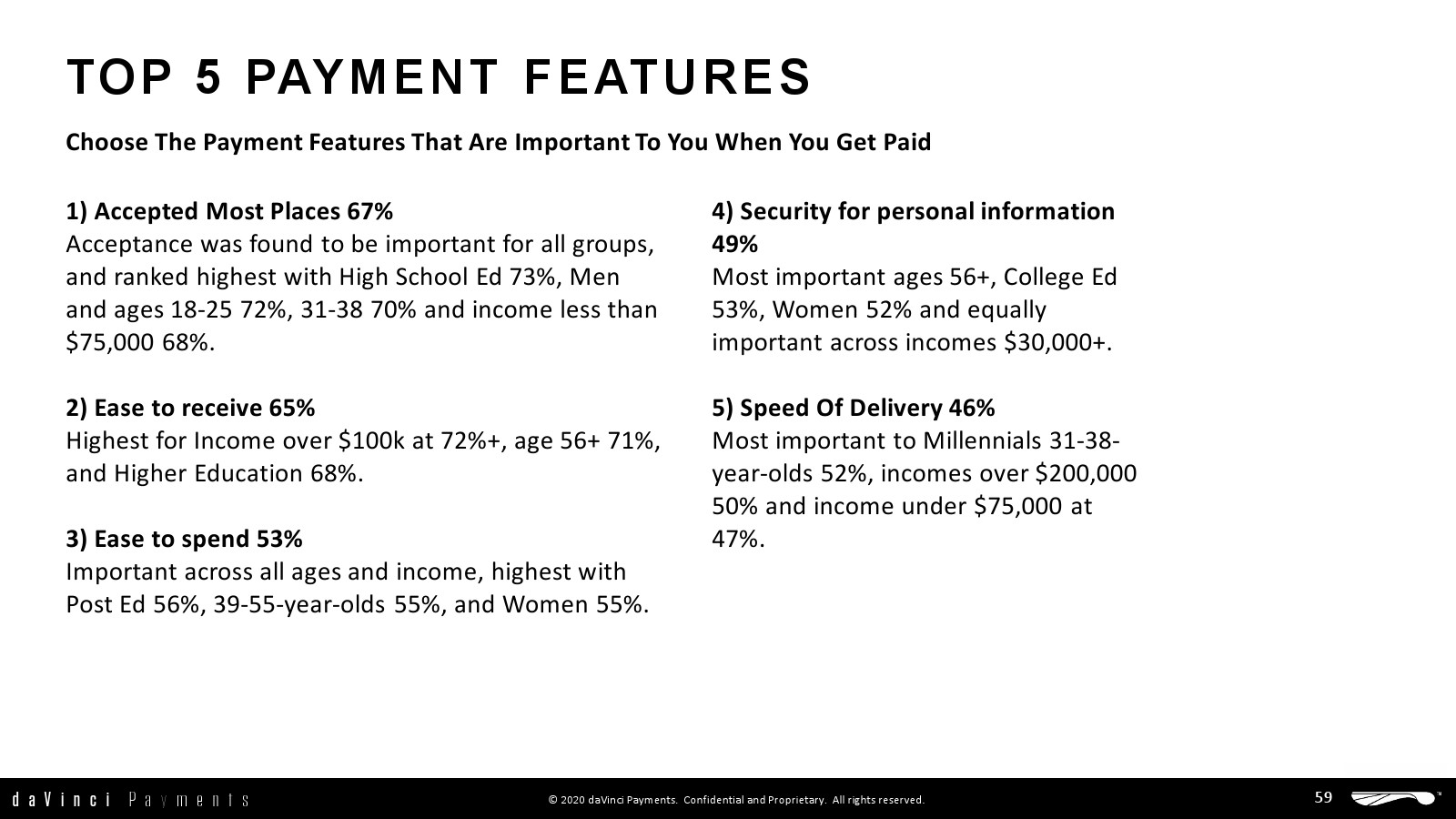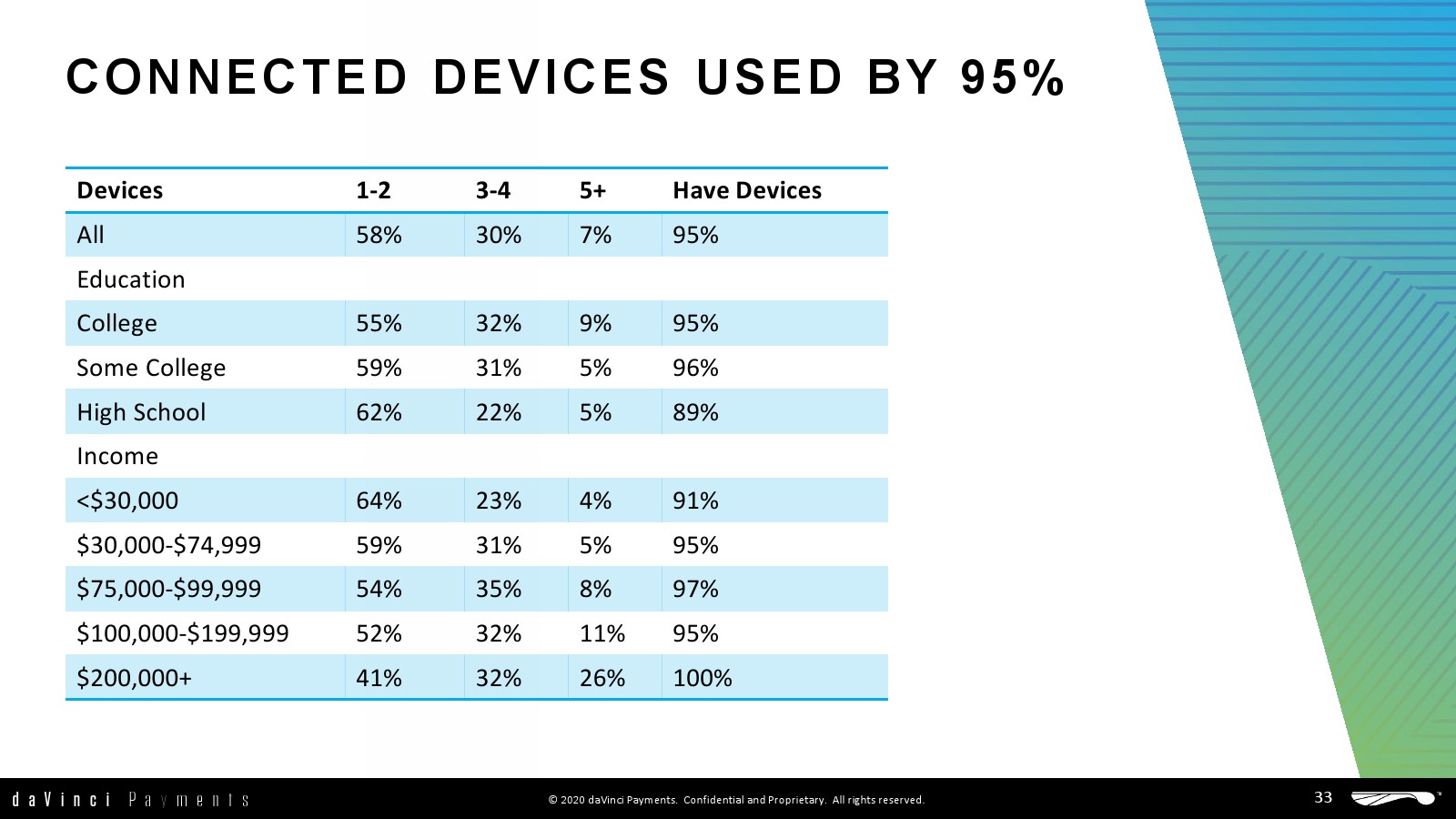 daVinci特别研究了每种支付方式的不同用途,重点关注谁使用了多少支付方式进行多少消费,以更好地了解个人支付方式的使用情况。