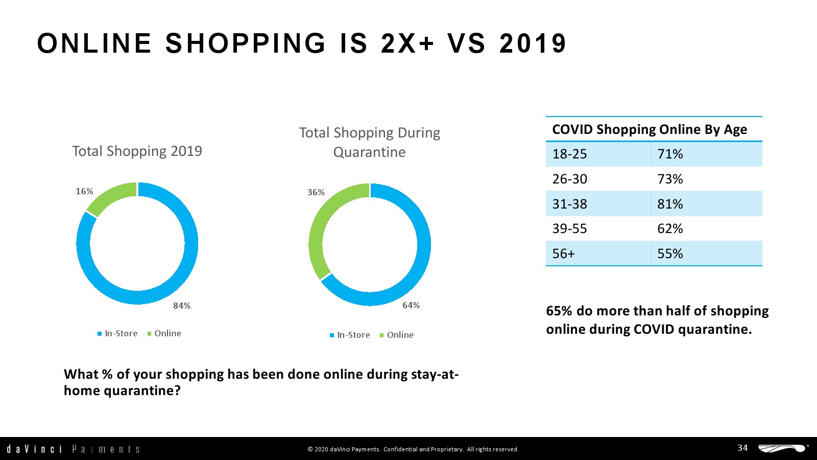 - 新冠肺炎的封锁期间,36%的购物是在线进行的,是2019年的2倍多。