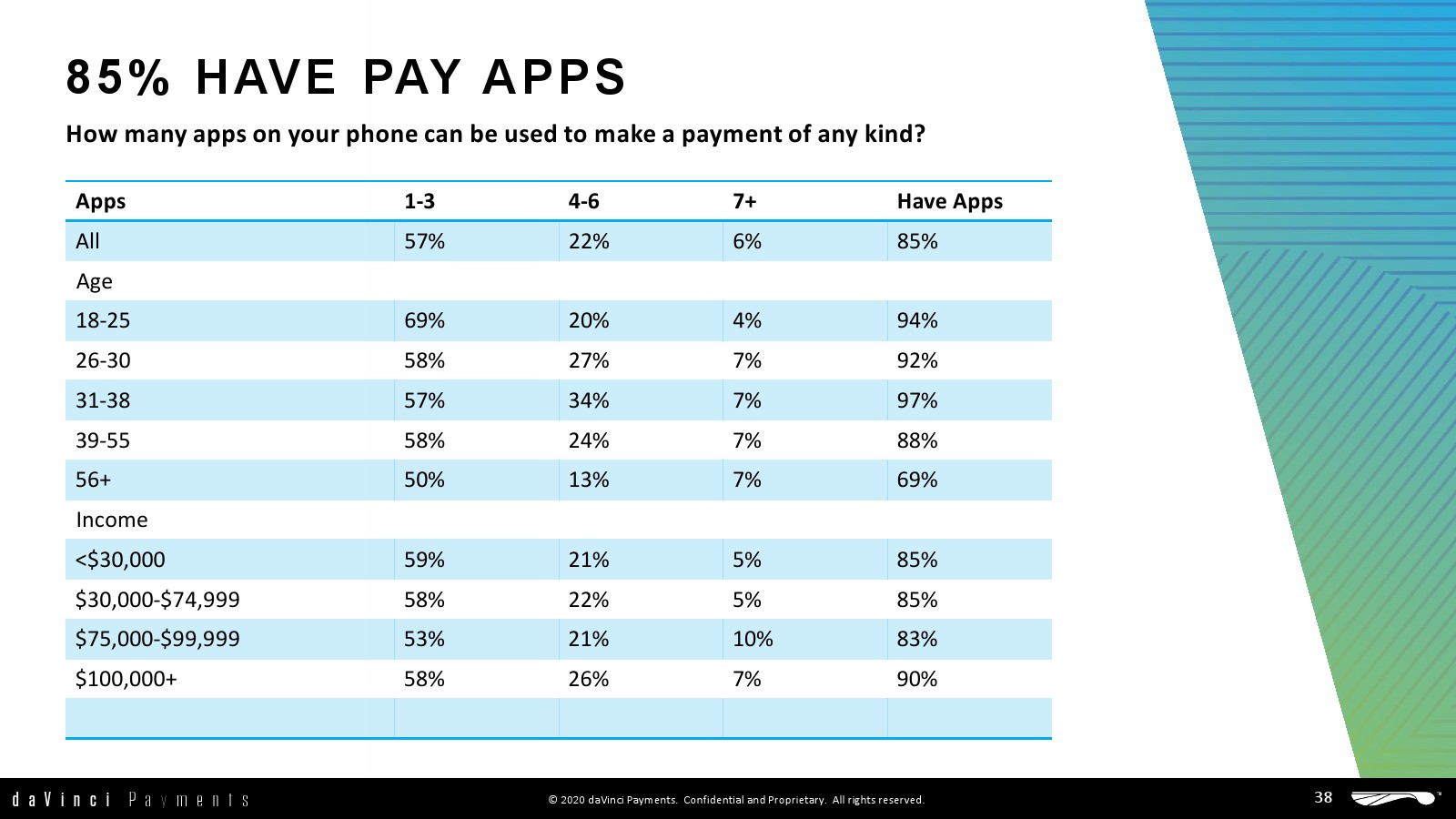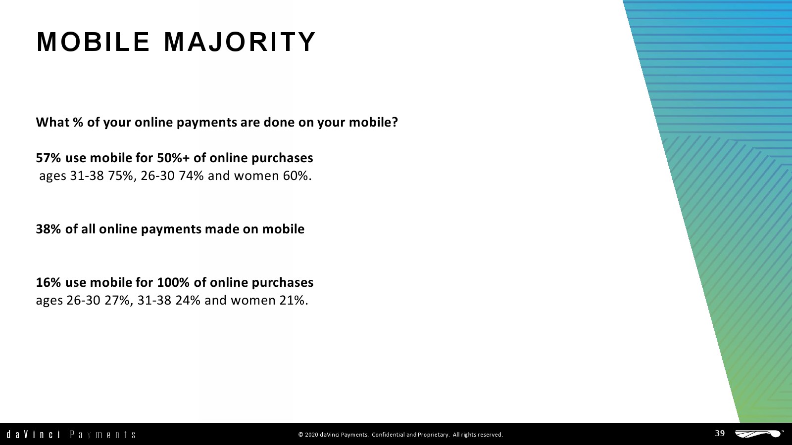 - 38%的在线支付是在移动设备上实现的。