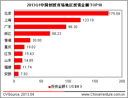 图6 2013Q1中国创投市场地区投资金额TPO 10