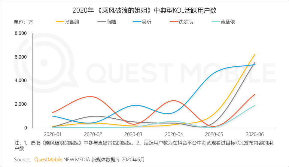 3.2 乘风借势,姐姐们带动活跃用户数飞跃式增长,流量叠加效应显现