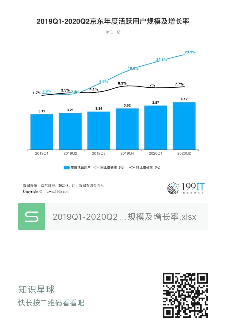 - 2020年Q3-2022年Q1京东年度活跃用户规模及增长率(附原数据表)