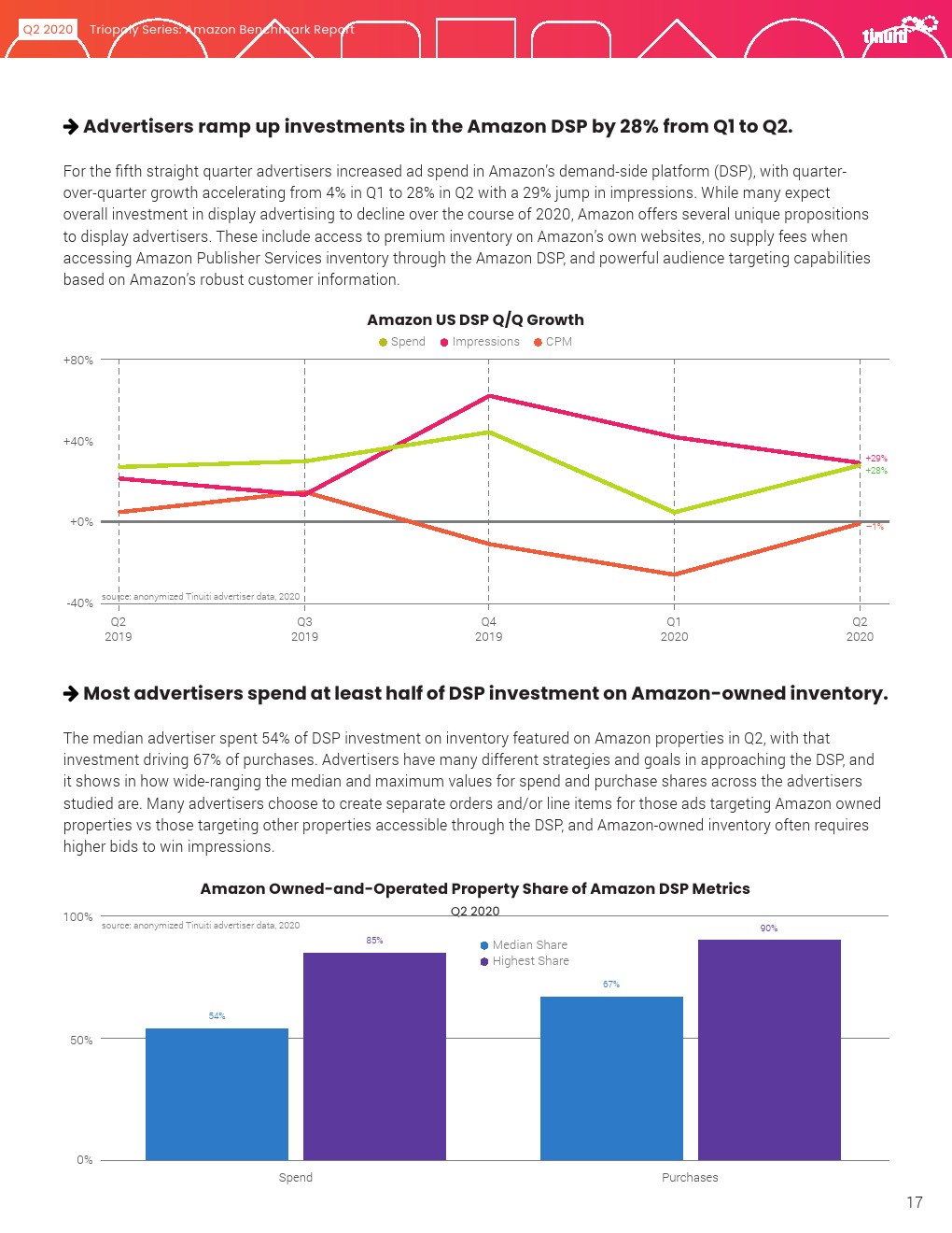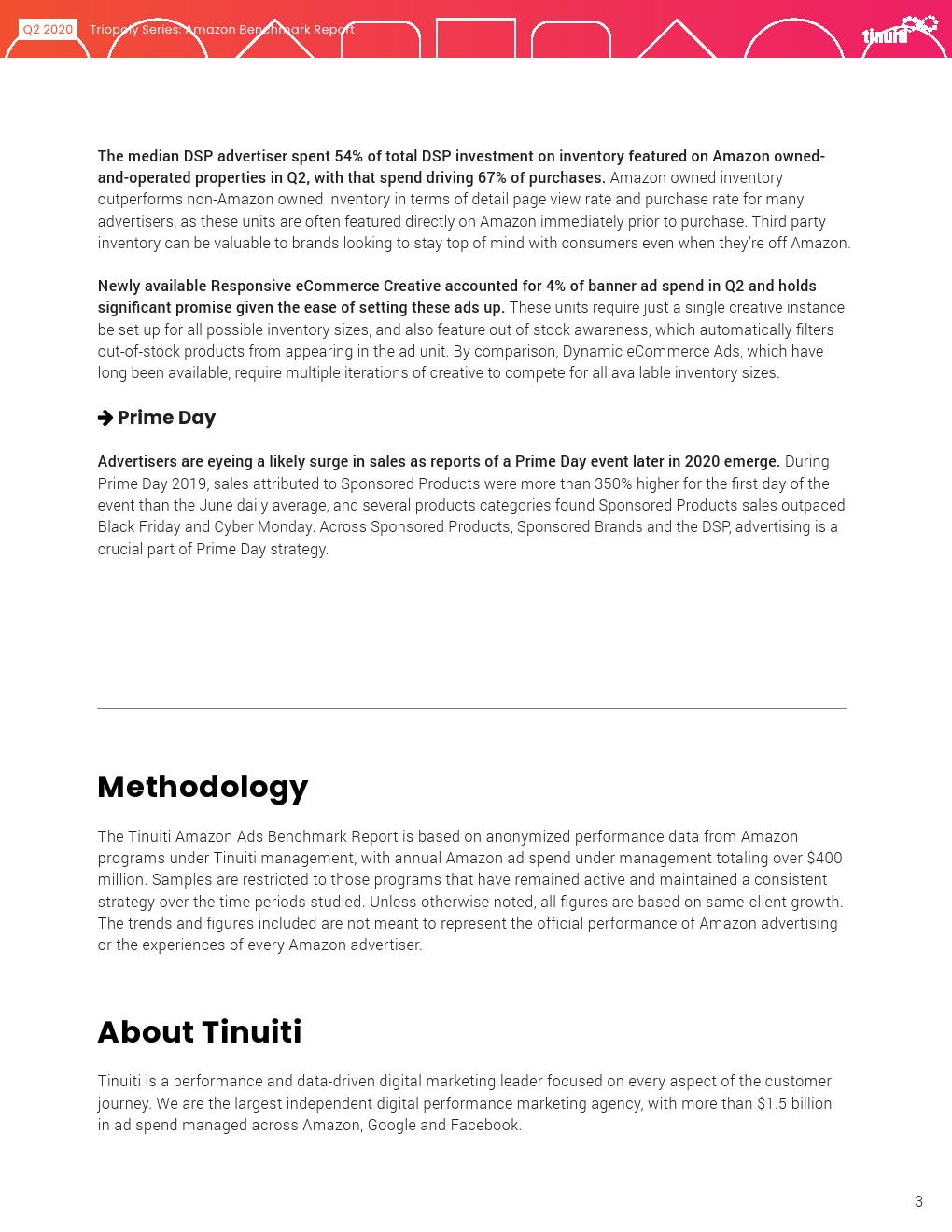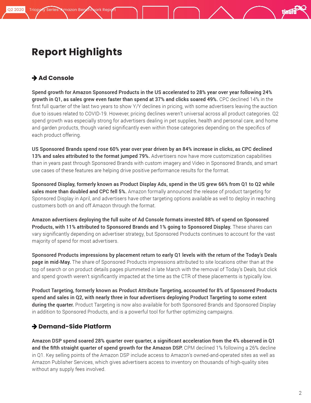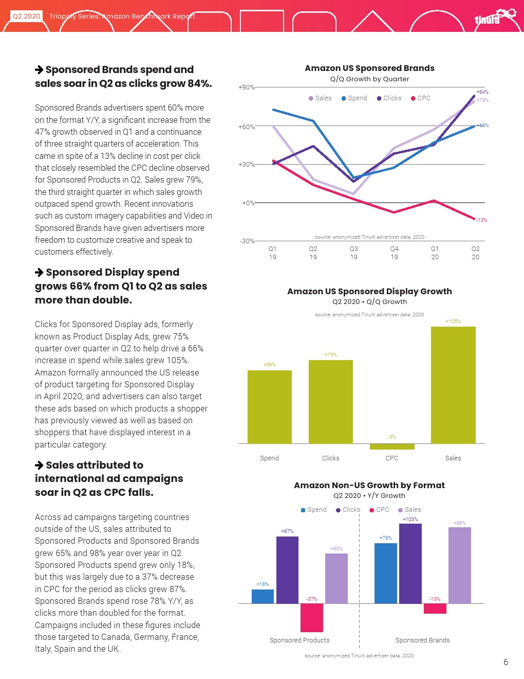 Tinuiti发布了“2020年第二季度亚马逊广告指标报告”。在新的定制功能的帮助下,第二季度亚马逊广告控制台的美国赞助品牌支出同比增长了60%。尽管广告形式不像赞助产品那样流行,但在连续几个季度增长后,第二季度出现了显著的增长。