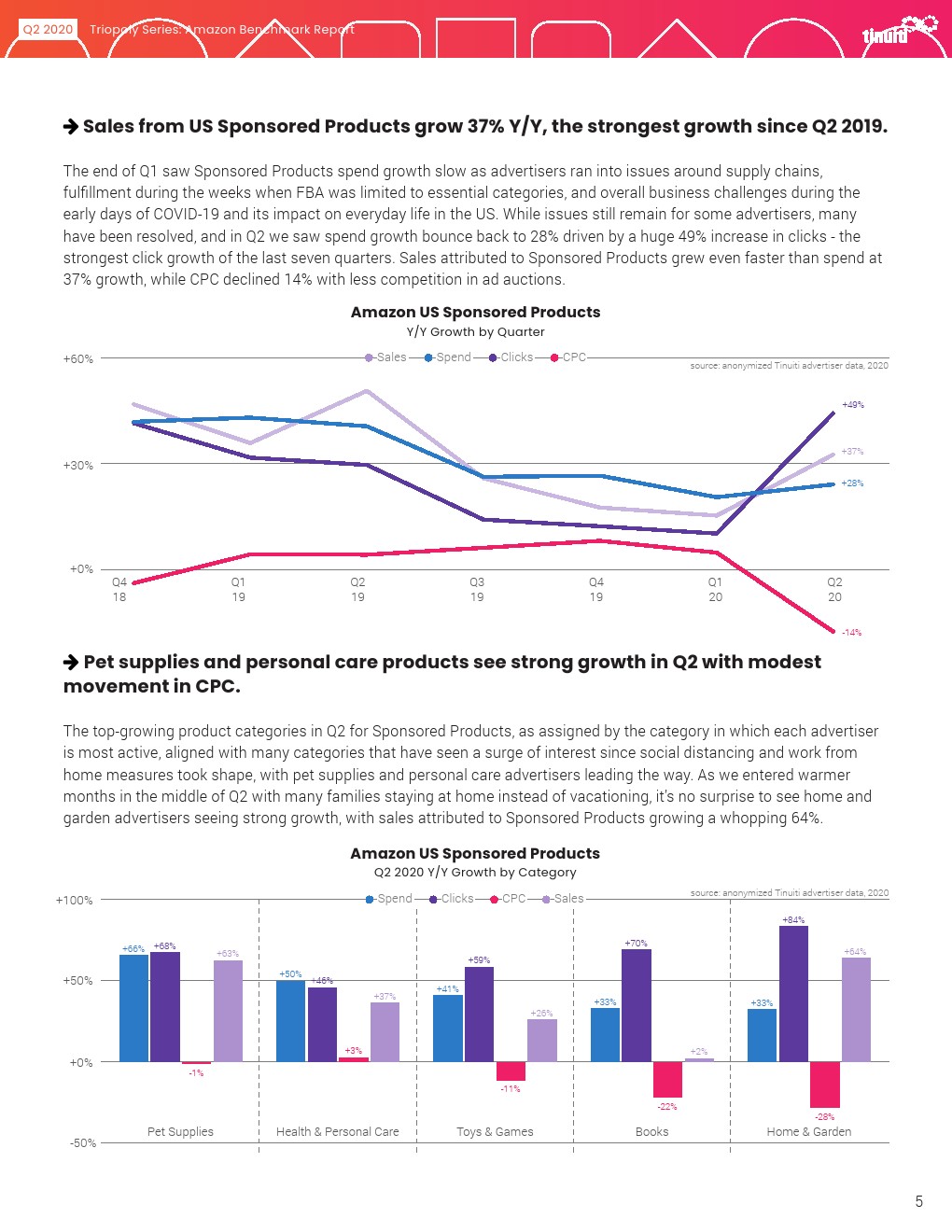 赞助品牌在几个关键指标上都出现了增长。连续第三个季度,该形式的支出增长强劲,第二季度增长了60%,销售额增长了79%,点击量增长了84%。虽然每次点击成本下降了13%,但第二季度赞助商产品的这一指标也出现了类似的下降(14%)。