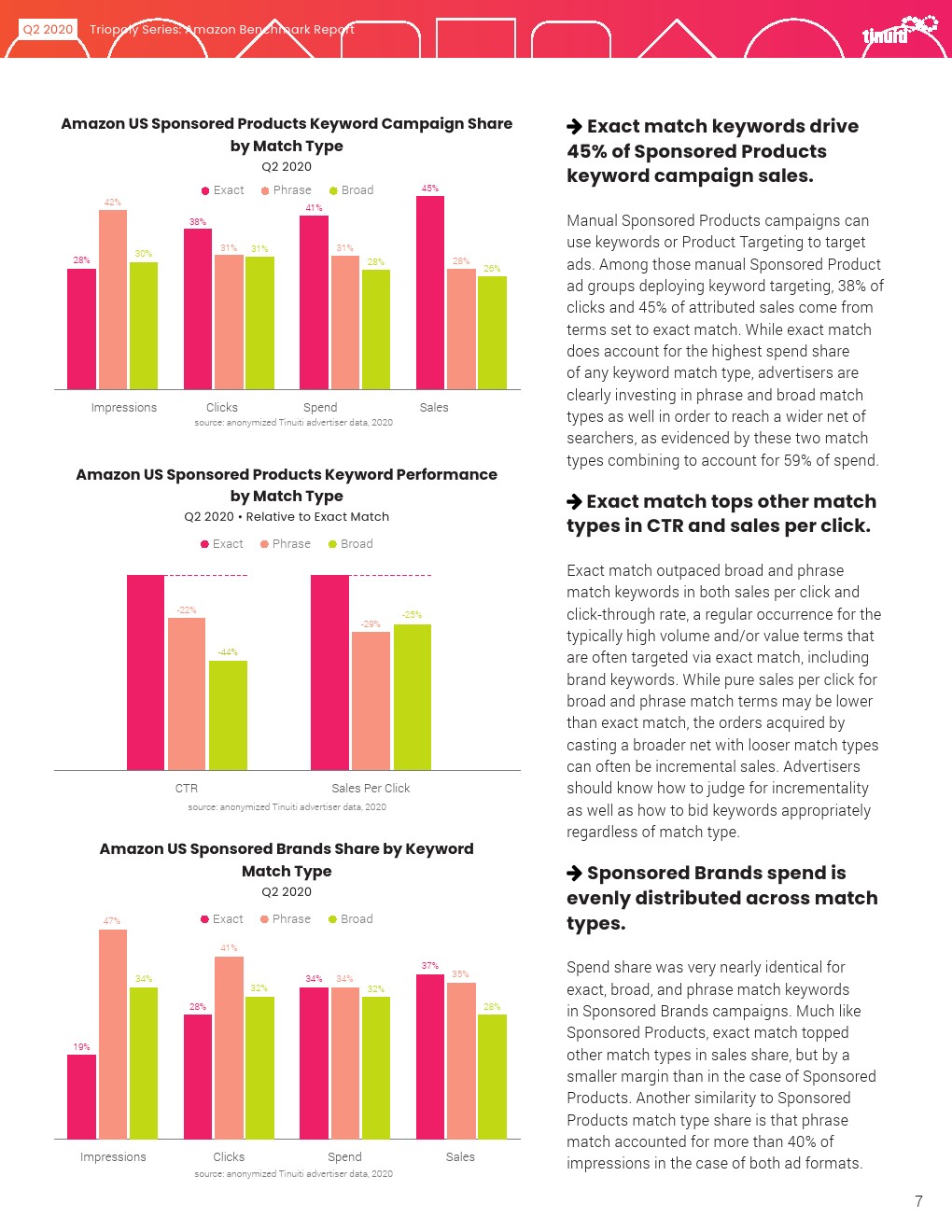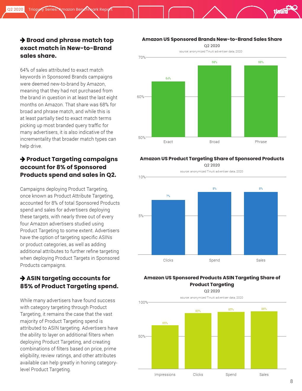 在归因于完全匹配的关键字的赞助品牌销售中,64%被亚马逊视为新品牌。这一百分比在广泛匹配(68%)和短语匹配(68%)中略高。