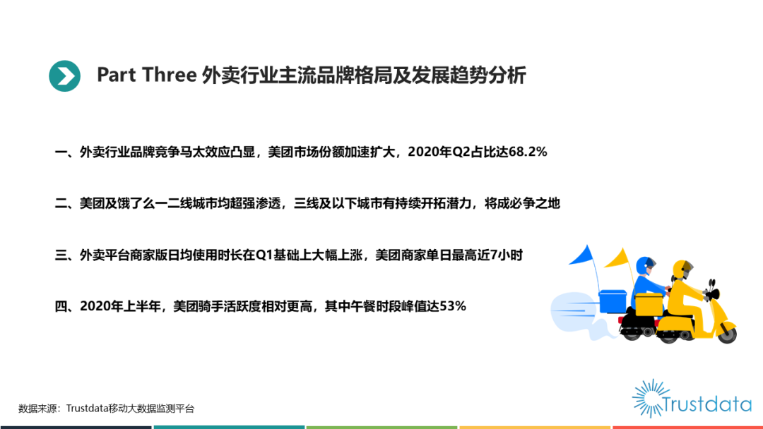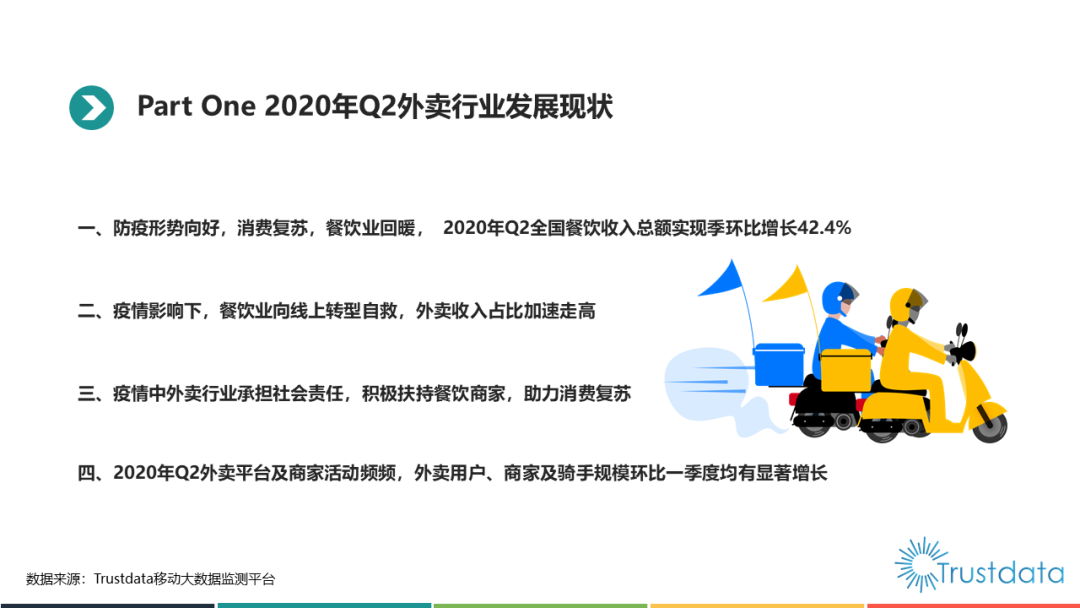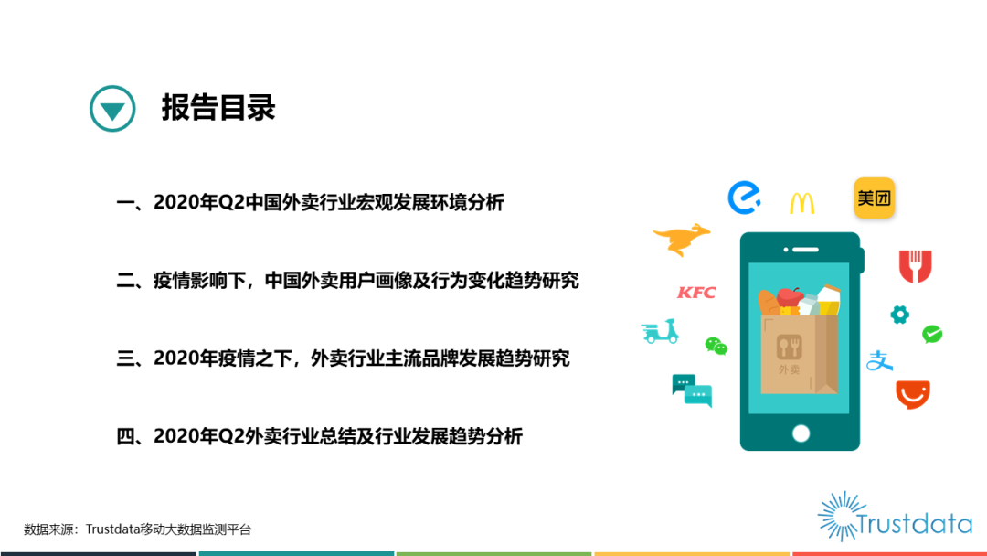 Trustdata:2020年Q2中国外卖行业发展分析报告 更多阅读:Trustdata:2019年Q3中国外卖行业发展分析报告TrustData:2015年1月至10月中国移动互联网新闻客户端发展分析报告2014年中国物联网产业发展分析报告Trustdata:2020年2月份中国移动互联网行业分析报告TrustData:2015年1-5月中国移动互联网出行用车应用发展报告闲鱼:2025年二手电动车成交近1000万台Crunchbase:2019年外卖行业已经获得38亿美元投资QuestMobile:2025年7月中国外卖员达1400万,女性占比24.3%中国外卖订单量从2015年的17亿件增长到2020年的171.2亿件在中国,只抓一个权健是不够的Crunchbase:2018年中国初创企业已经获得938亿美元投资Trust Data:2015年1-5月中国移动互联网生鲜和外卖应用发展报告2018中国社区生鲜报告Trustdata:2022年Q2中国移动互联网行业发展分析报告Trustdata:2021年Q3中国移动互联网行业发展分析报告