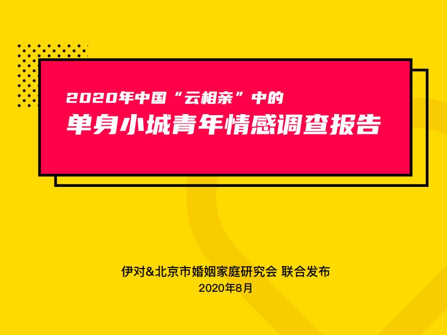 8月25日,正值中国传统佳节的七夕,视频恋爱社交平台伊对联合北京市婚姻家庭研究会共同发布《2020年中国“云相亲”中的单身小城青年情感调查报告》。