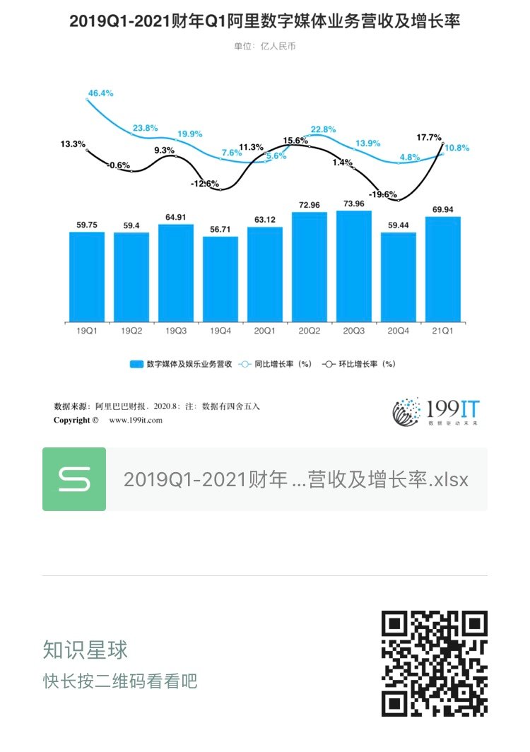 2019Q1-2021财年Q1阿里数字媒体业务营收及增长率(附原数据表) ​​​​