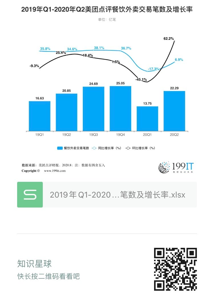 - 2019年Q1-2020年Q3美团点评餐饮外卖交易笔数及增长率(附原数据表)