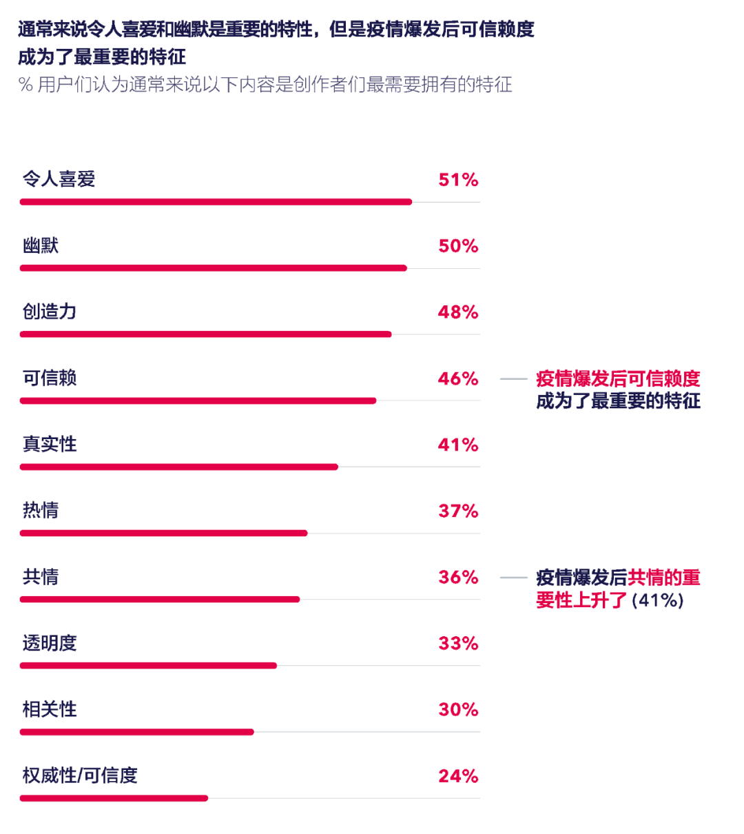我们已经知道了用户对未来品牌的期望,但是在疫情爆发期间,创作者对受众产生了什么影响呢?